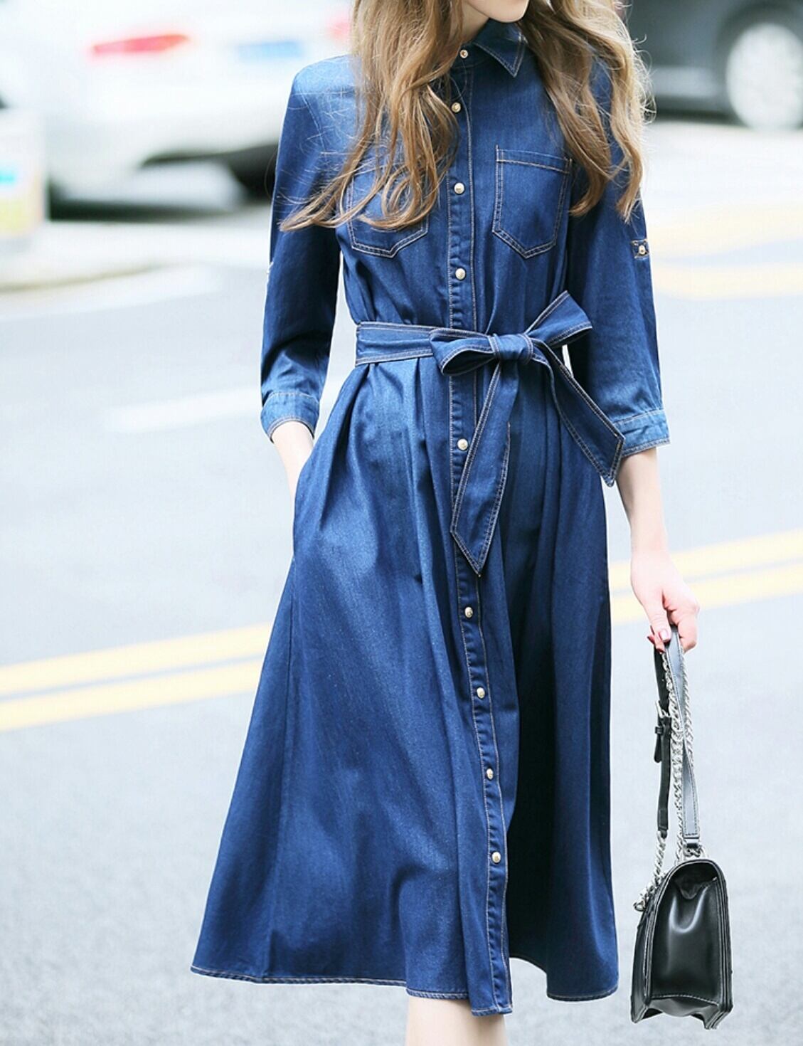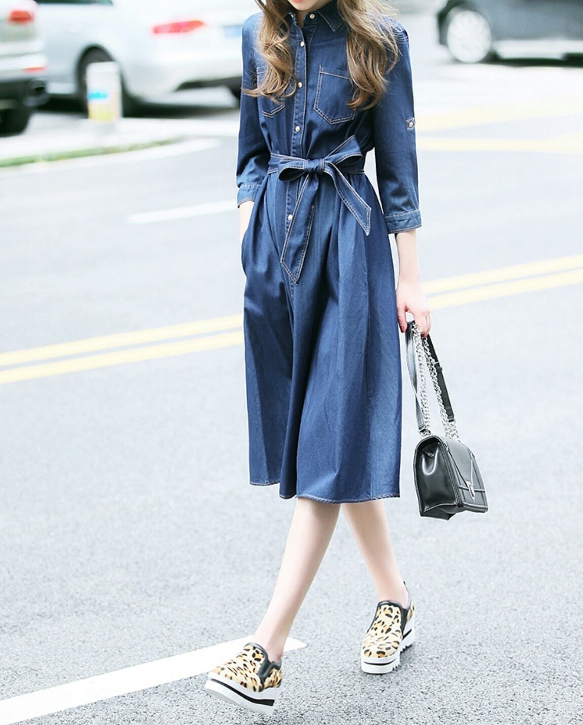 新作 オシャレ♪ウエストマーク/デニムフレアワンピース