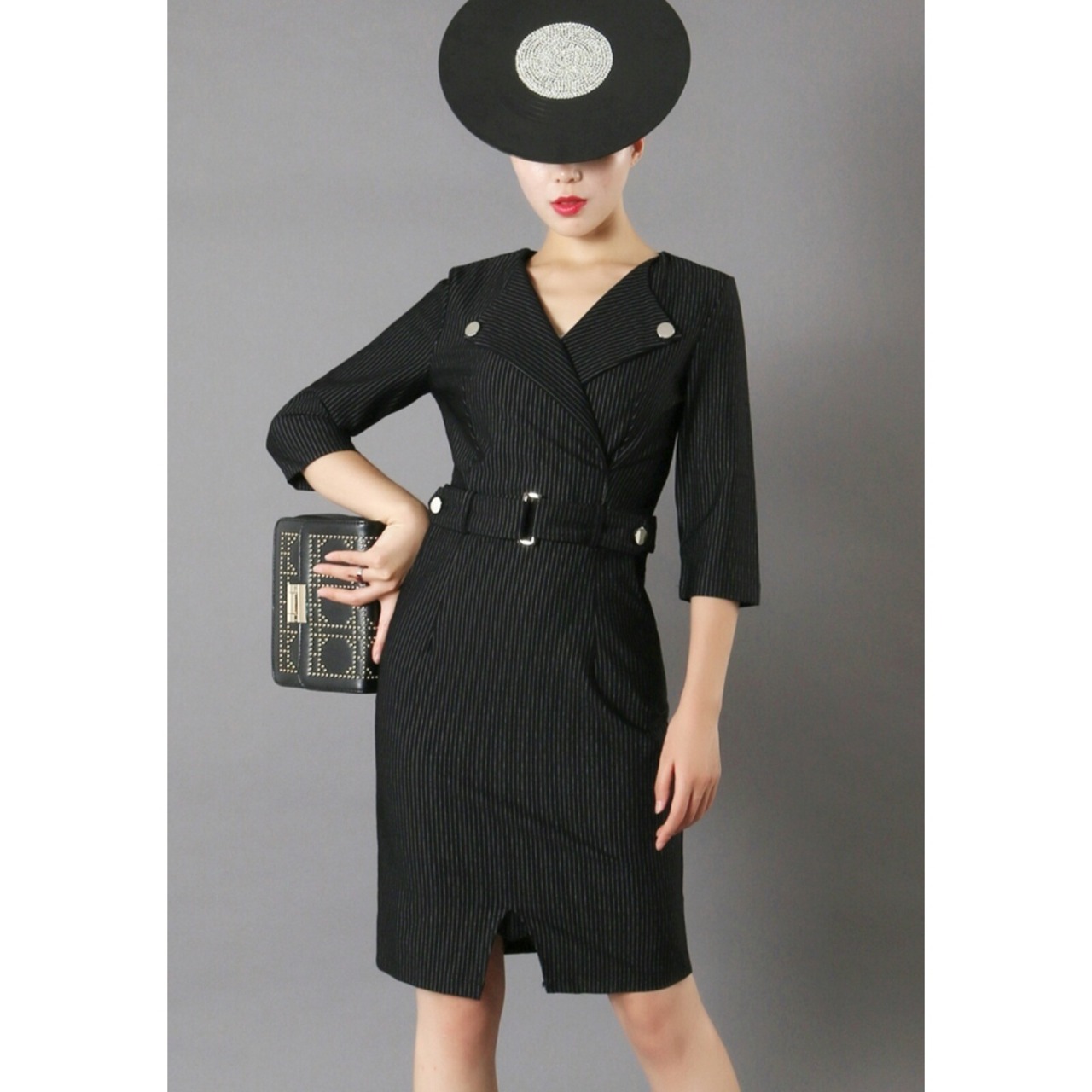 ストライプワンピースの上品なシルエットが清楚なオシャレ