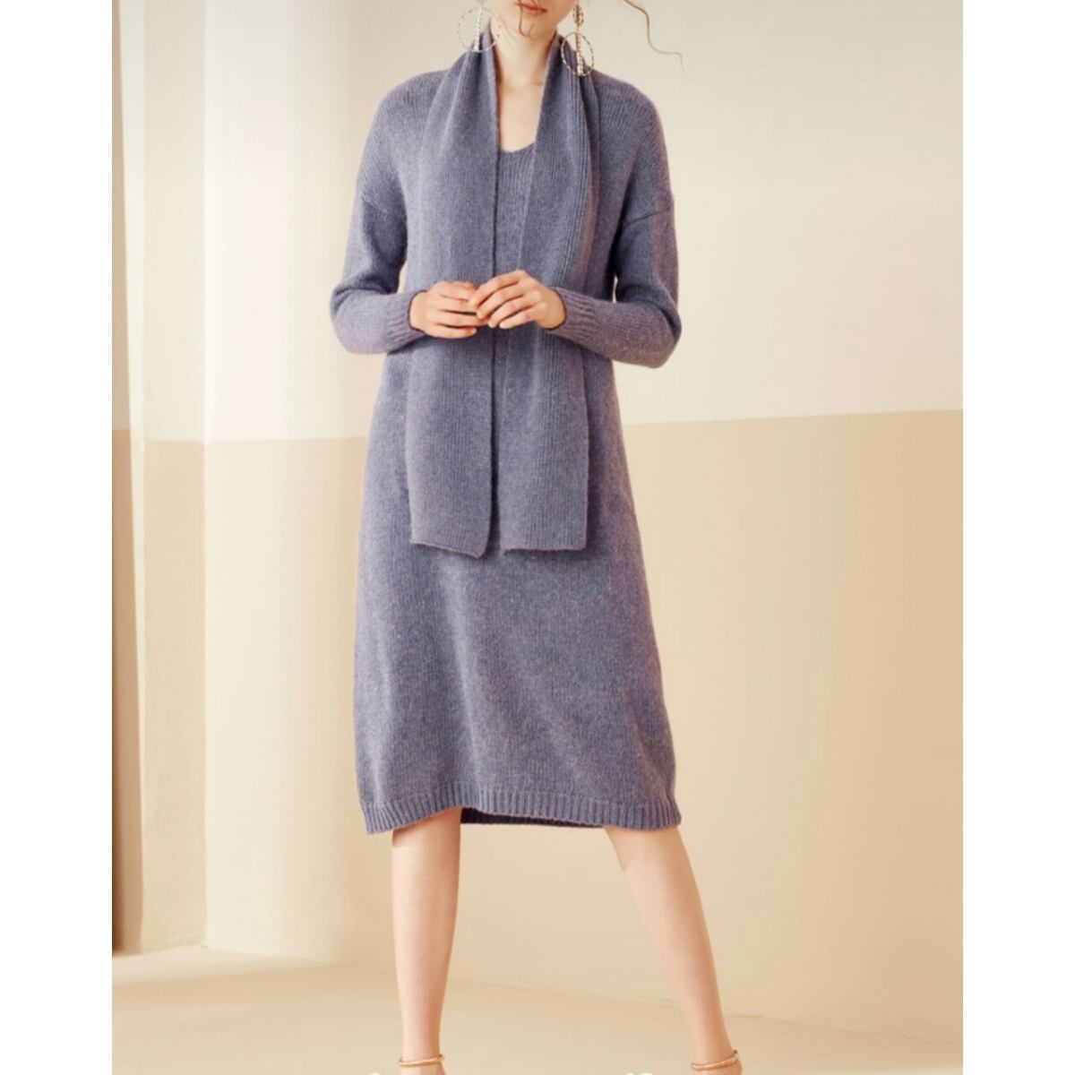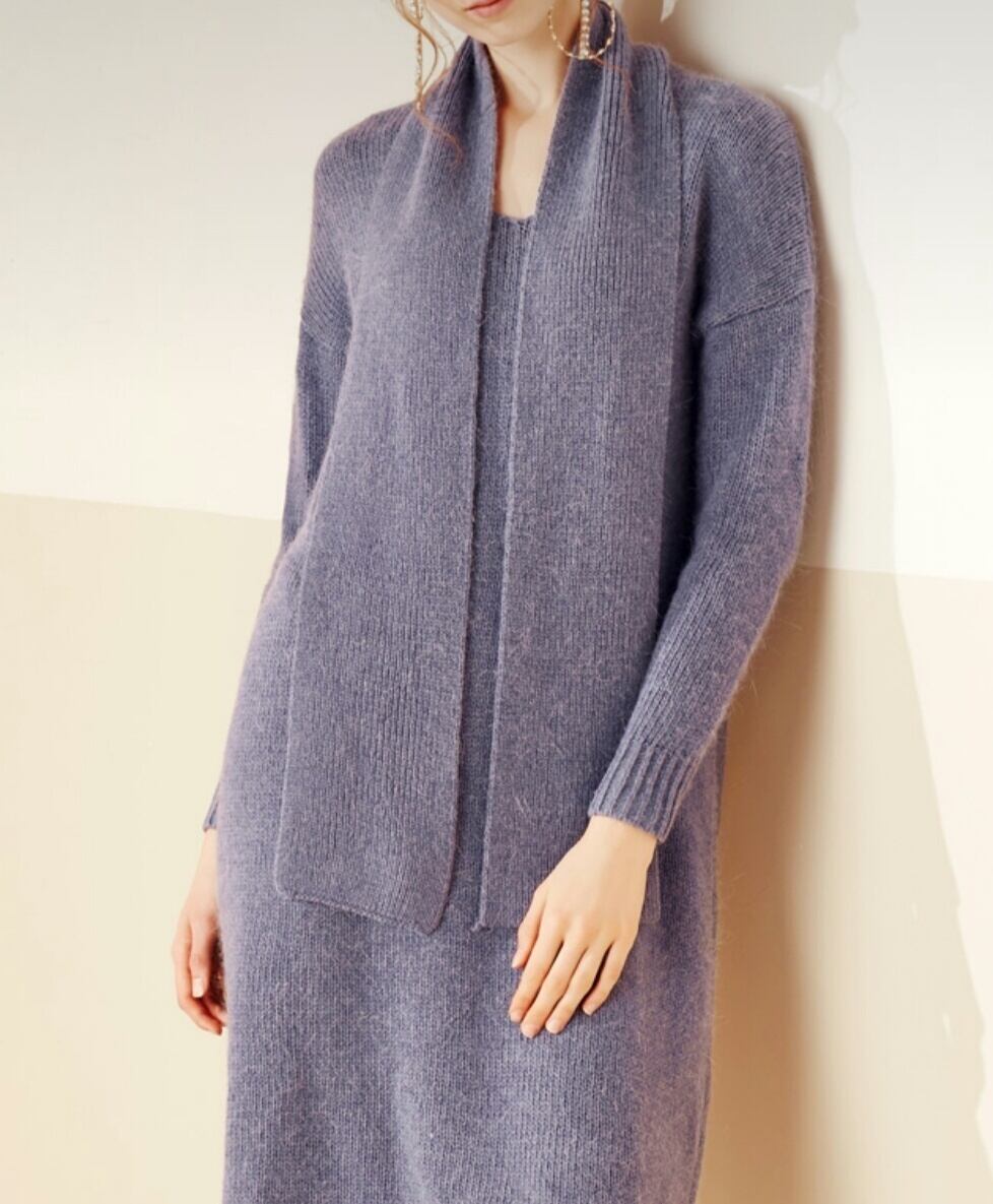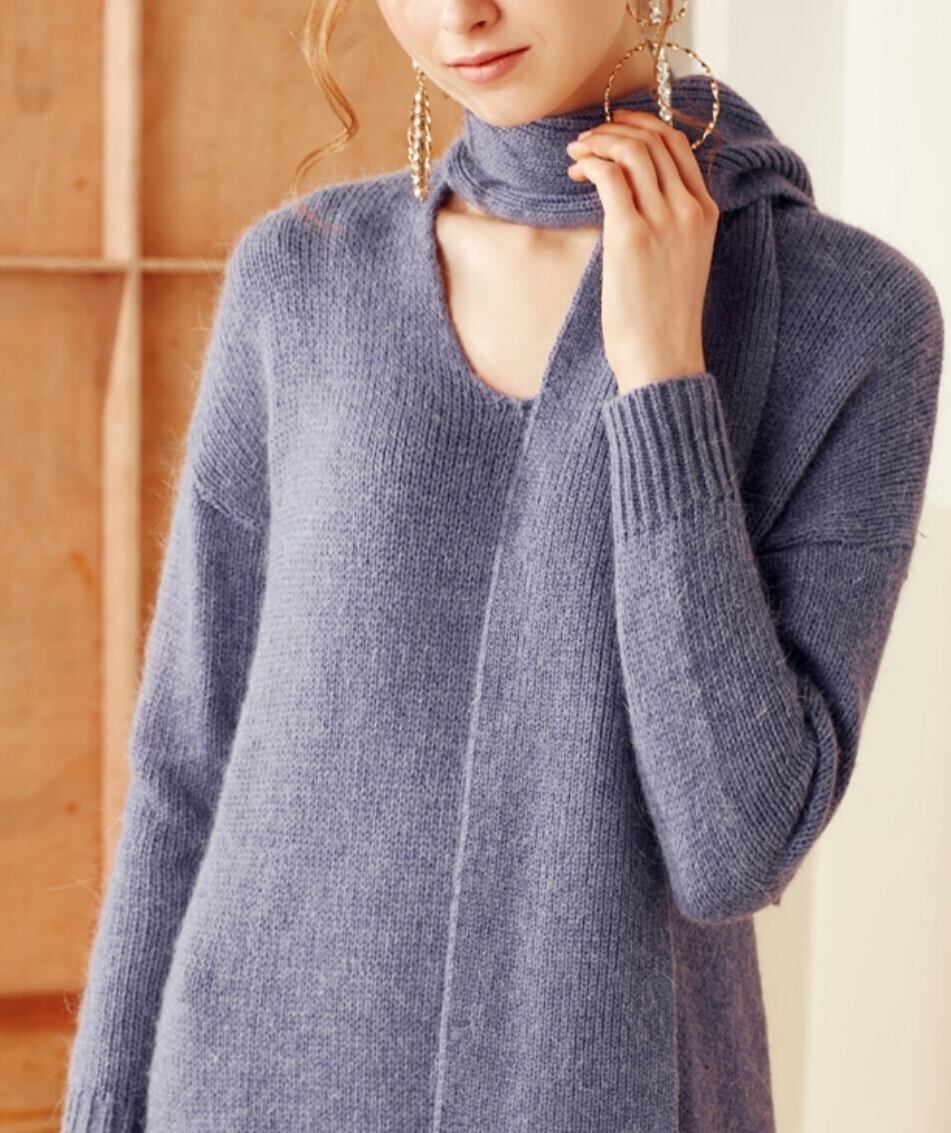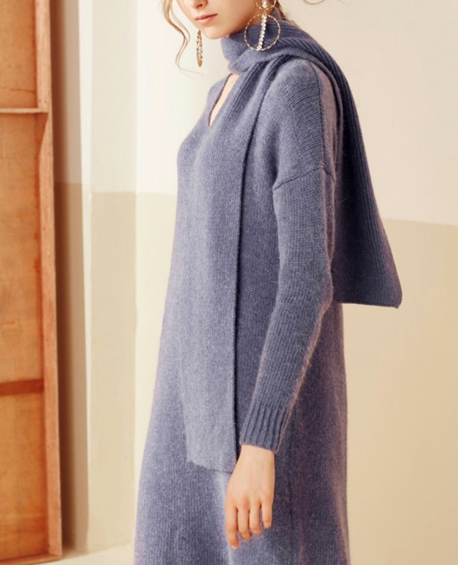 ラビットファーニットの柔らかい質感のマフラー付きワンピース