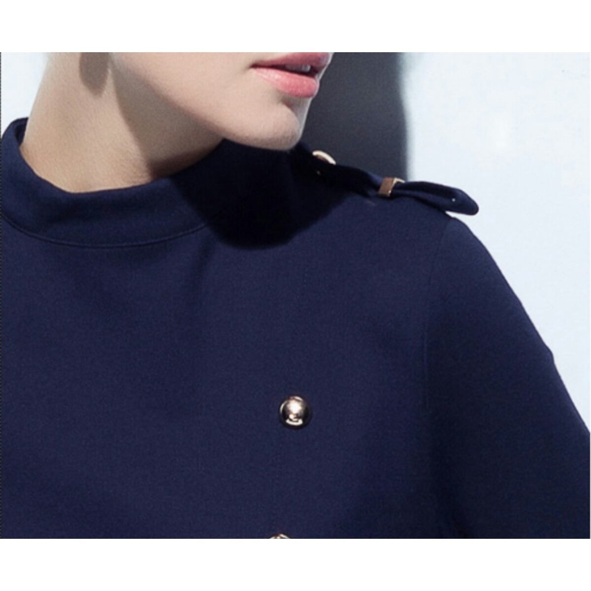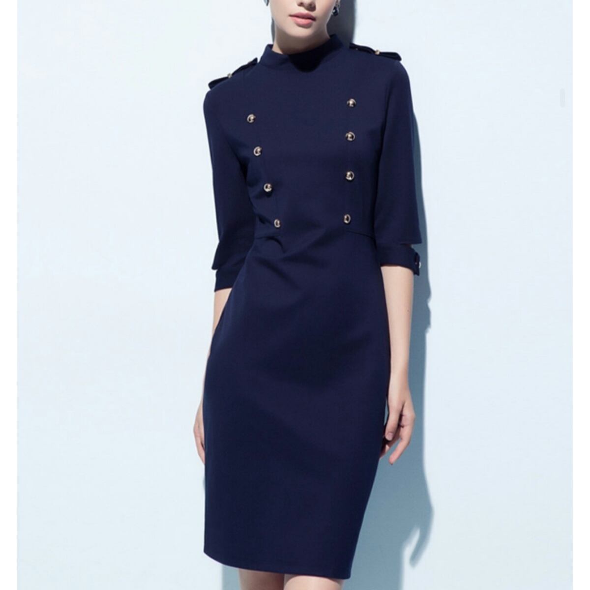 ダブルボタンでより綺麗なシルエット強調のネイビー赤ワンピース