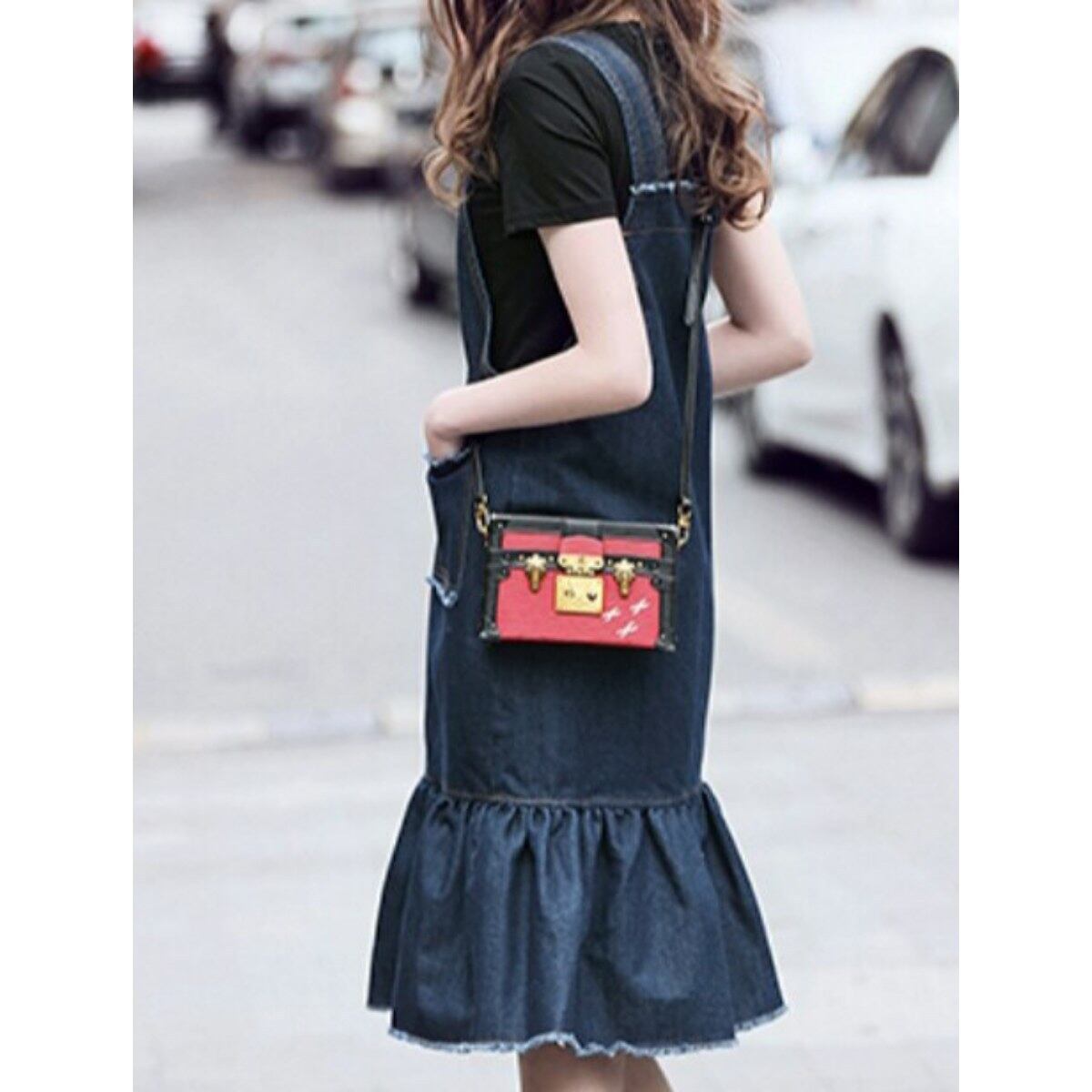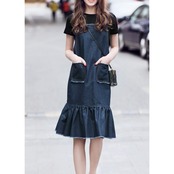 肩肘張らないレイヤードオフコーデ/デニムワンピース+Tシャツ