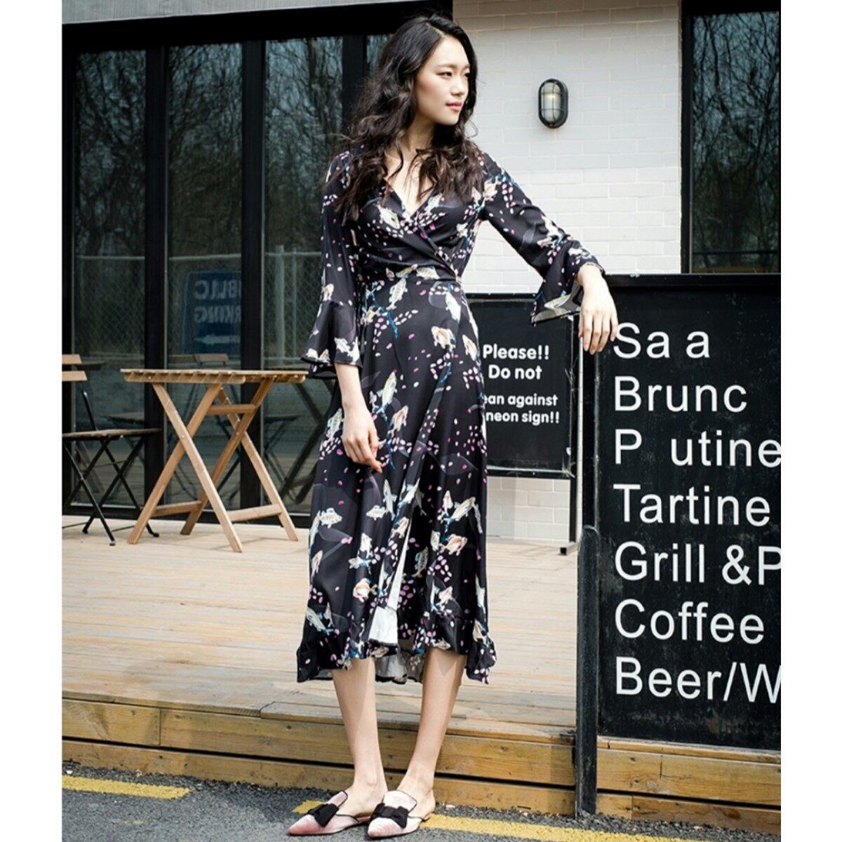 ハイウエストカシュクールで綺麗なフォルム魚&花びらワンピース