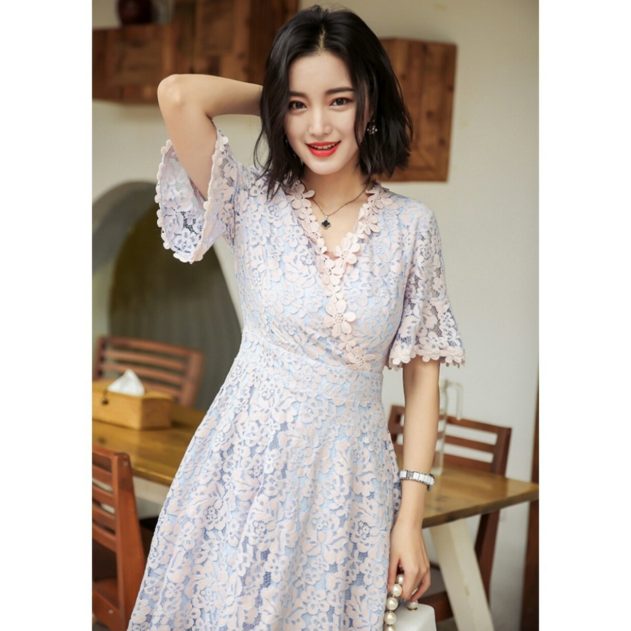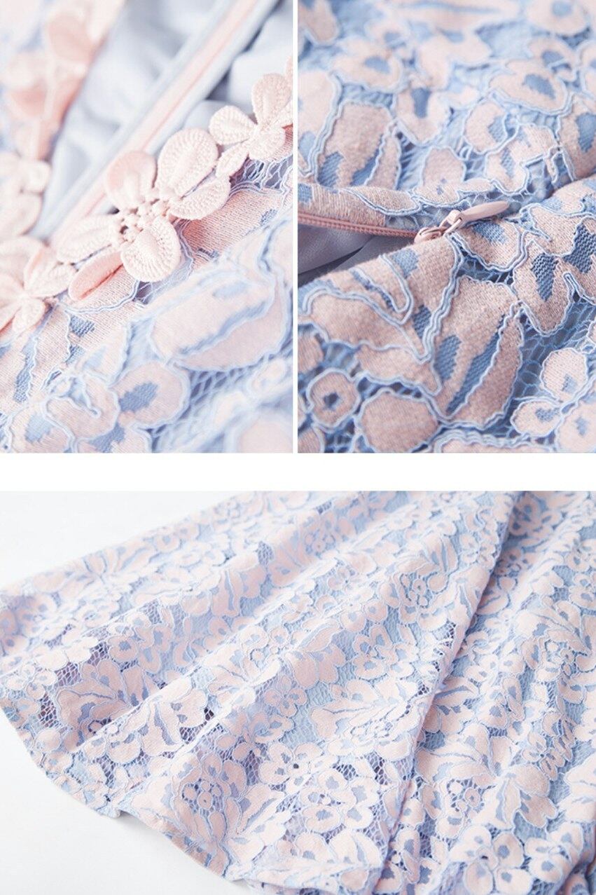 デート服にロマンティックなフラワーレースフレアワンピース
