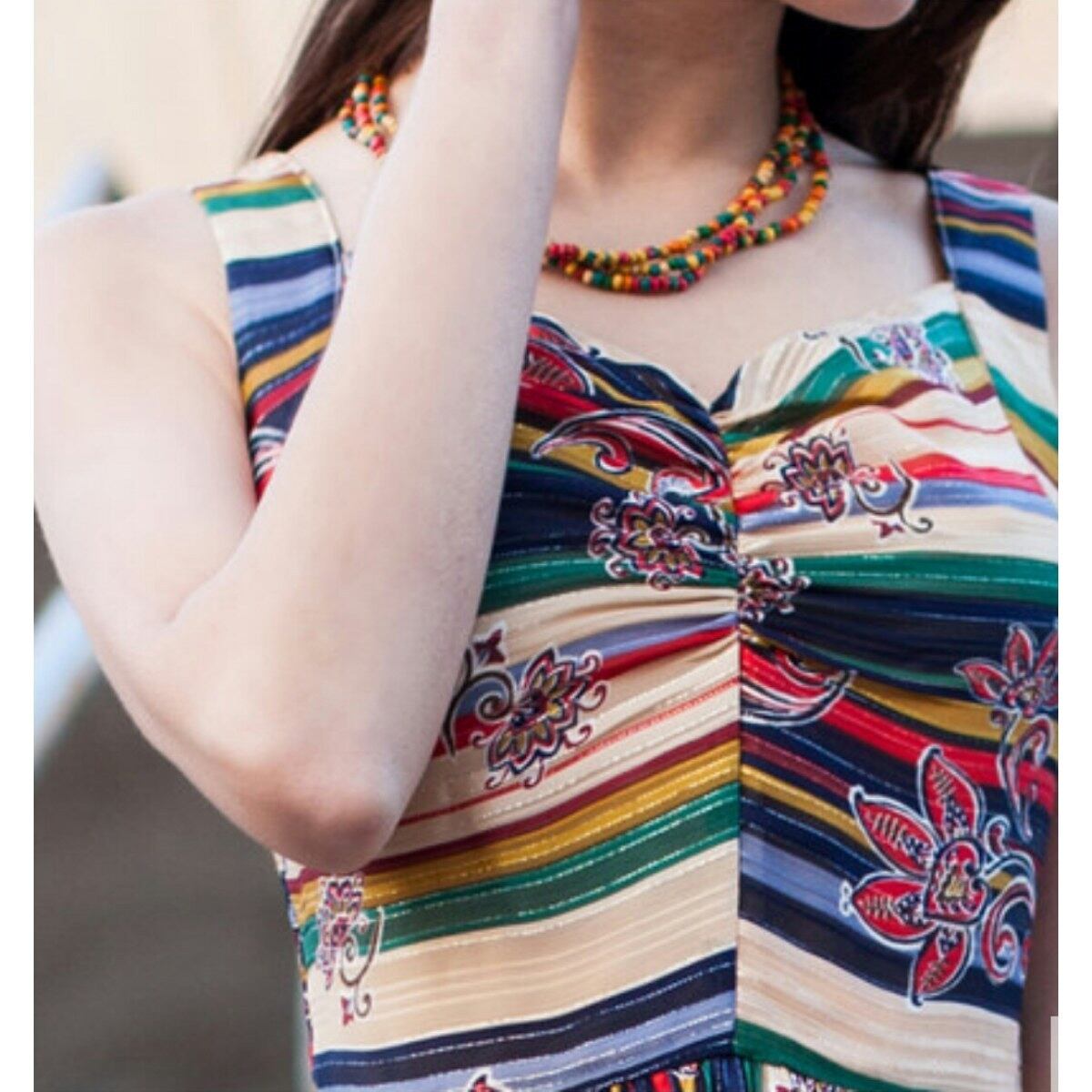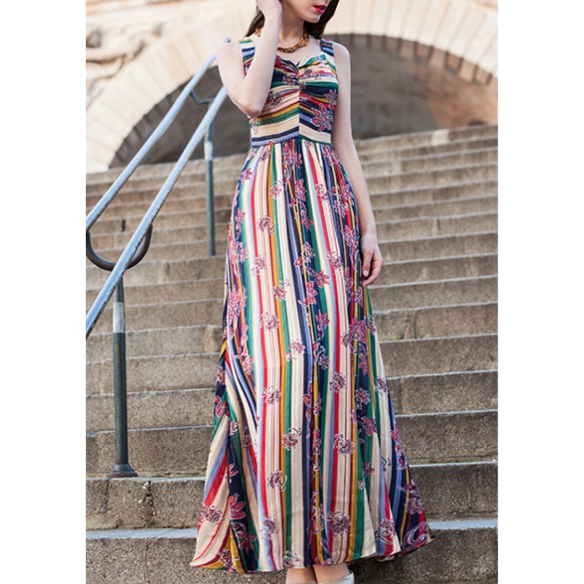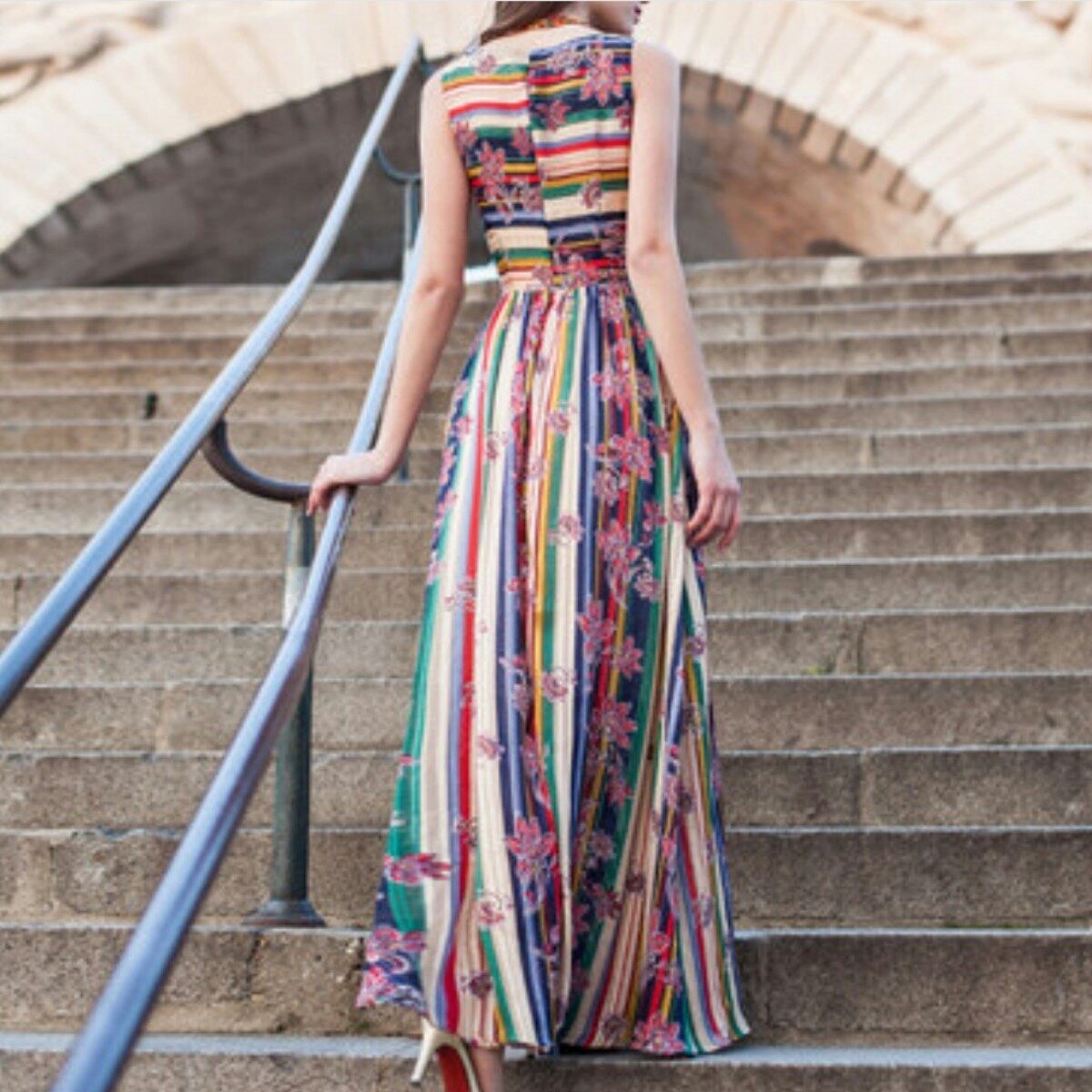 マルチボーダー×ストライプのPOPな模様ロングフレアワンピース