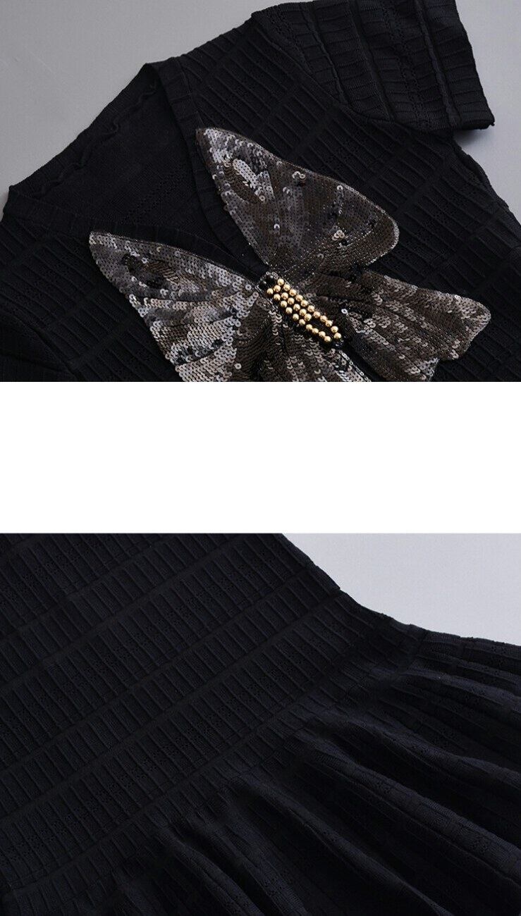 贅沢スパンコールリボンモチーフニットマーメイドワンピース赤黒