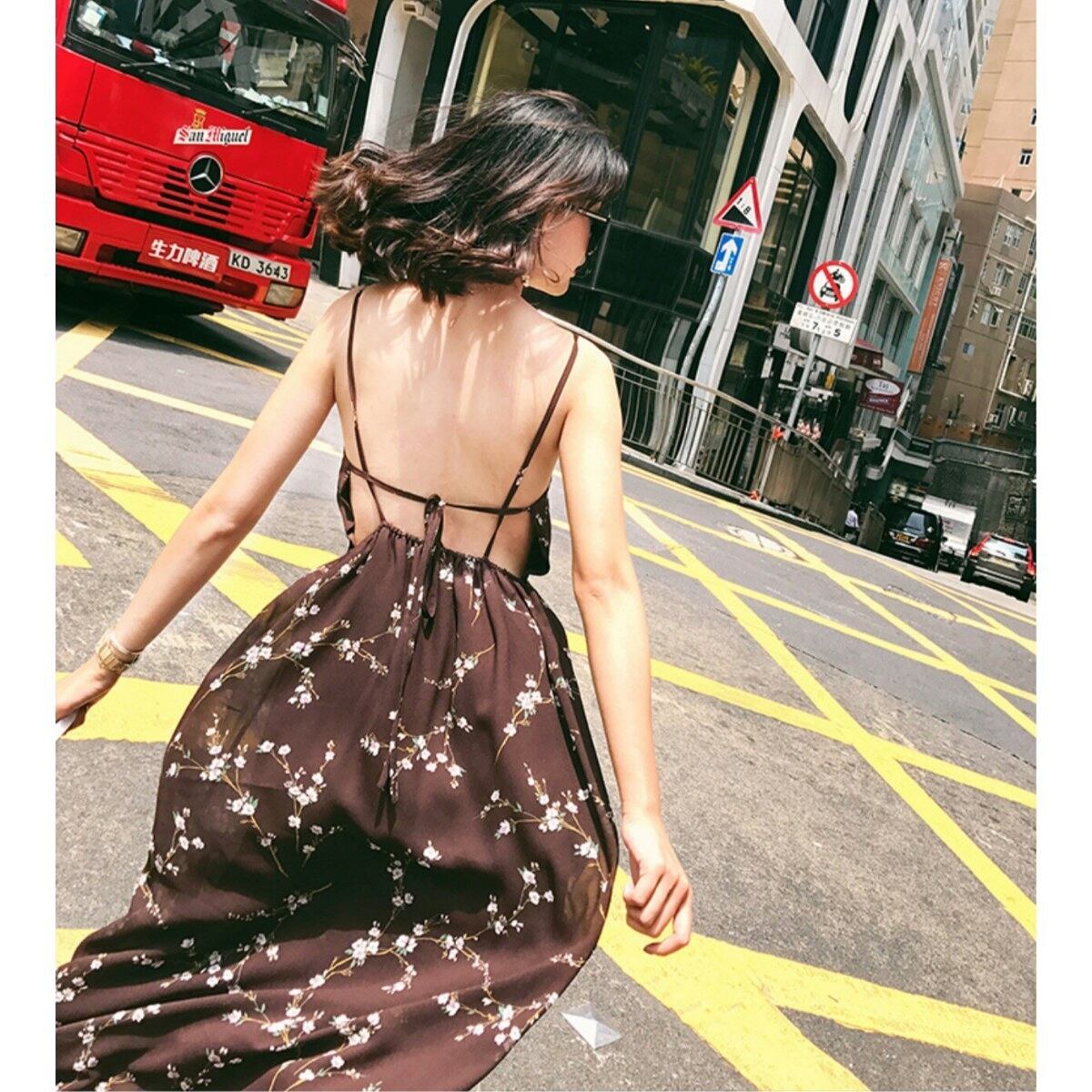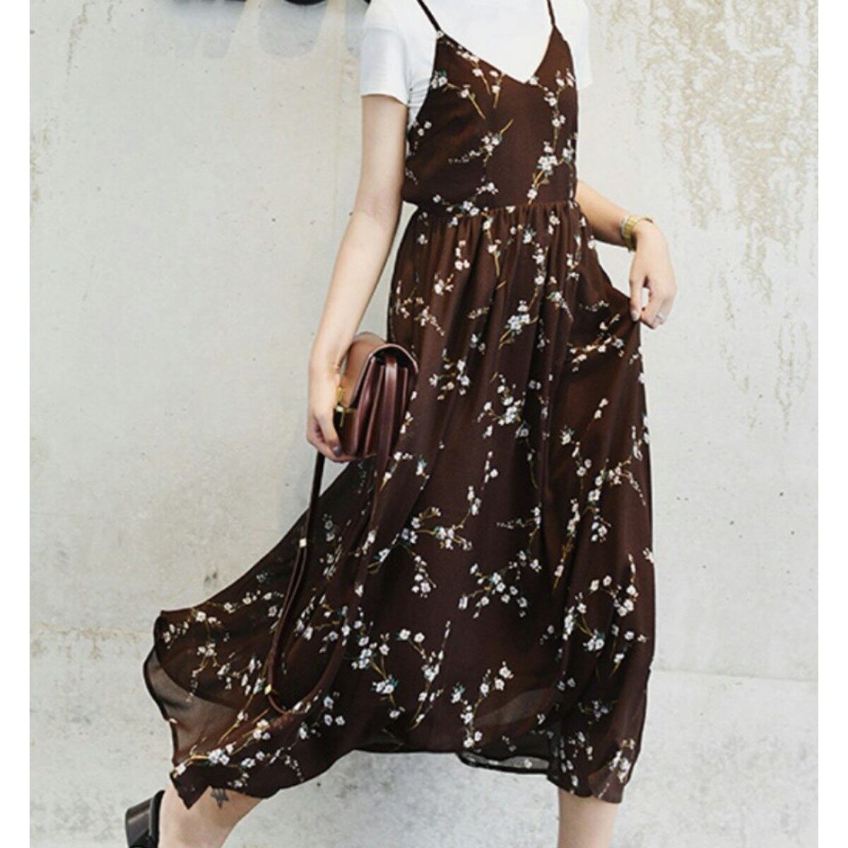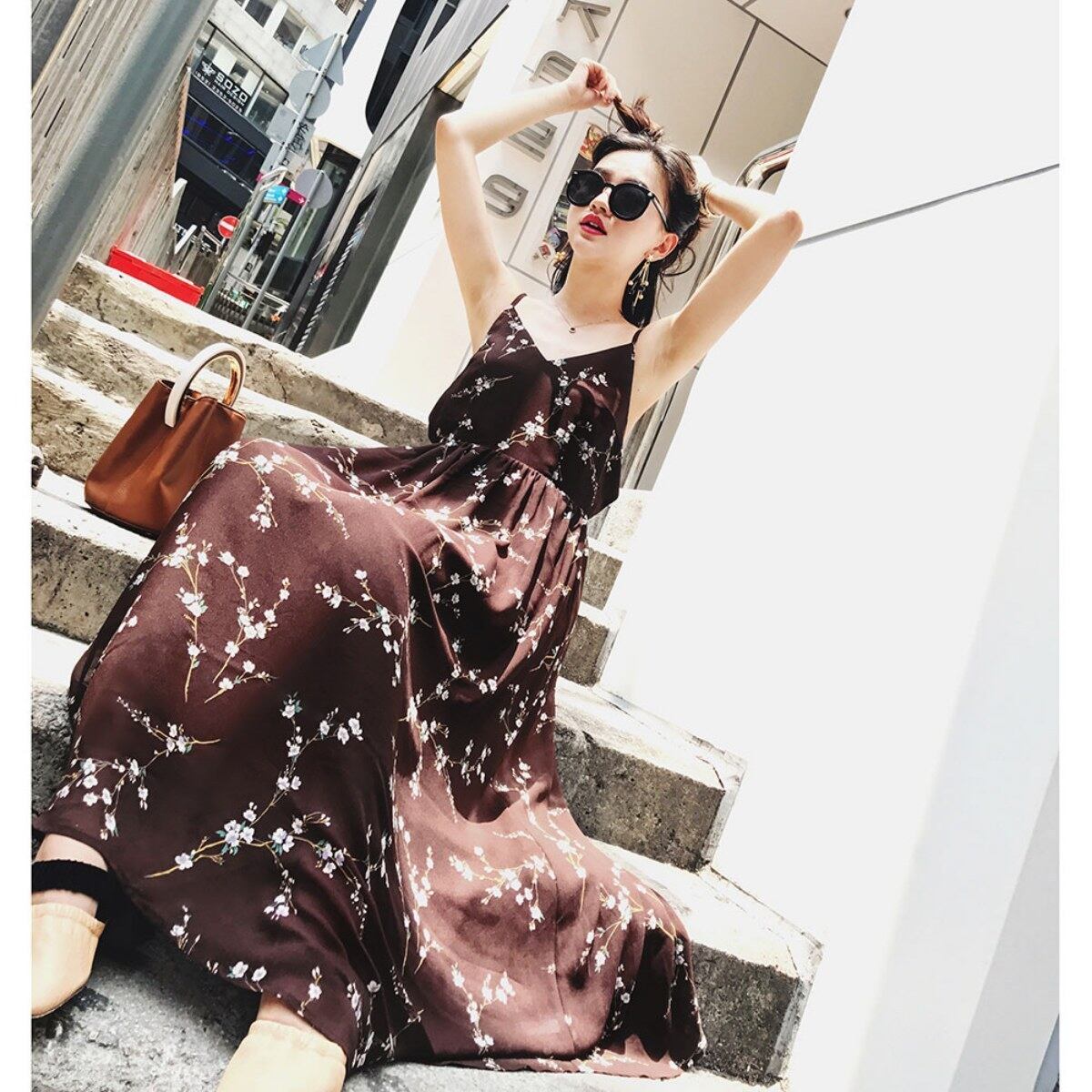 大人の夏コーデに背中の開いた和風花柄キャミロングワンピース
