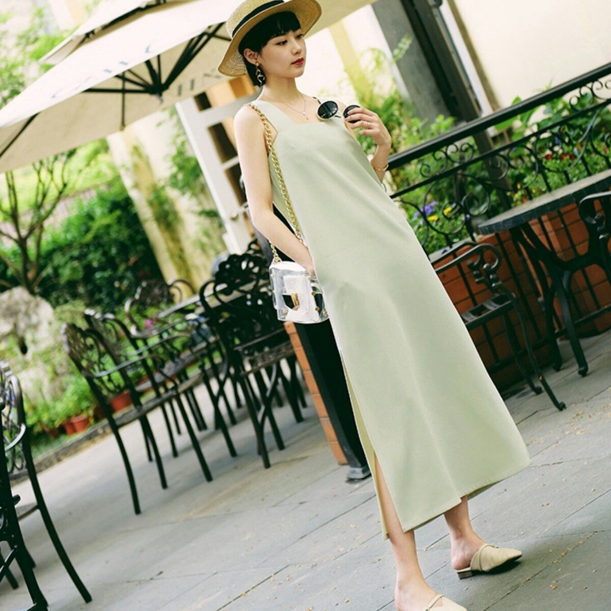 パステルカラーが綺麗なスリットノースリーブロングワンピース