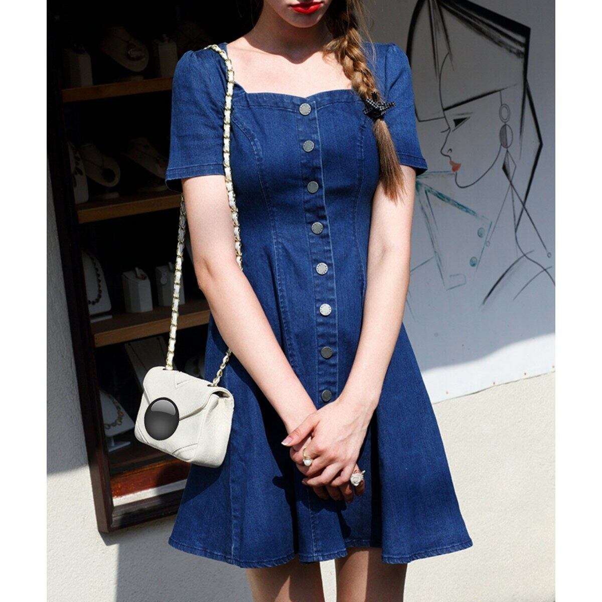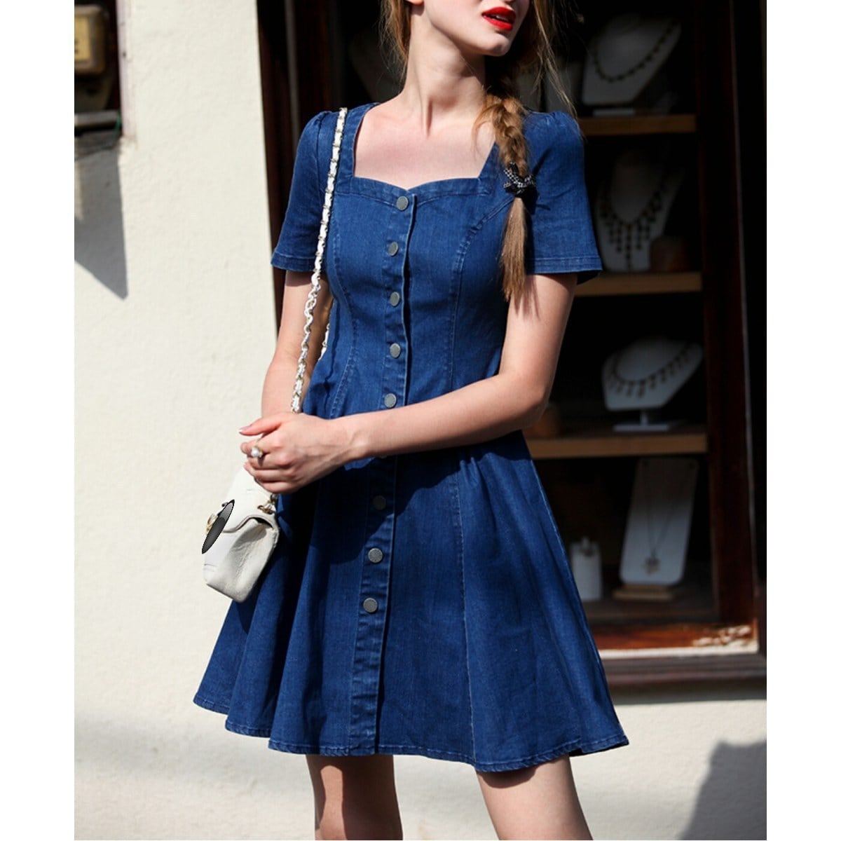 1枚でおしゃれ女性らしいフォルムデニムフレアワンピース
