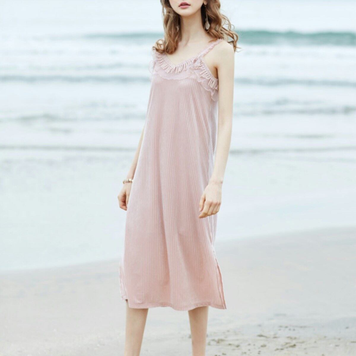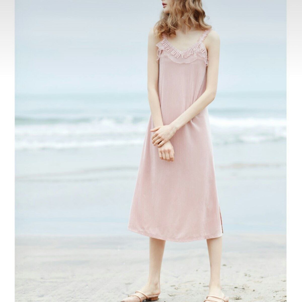 夏コーデのガーリースタイルにかわいいフリルキャミワンピース