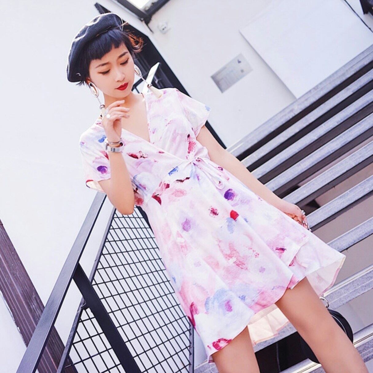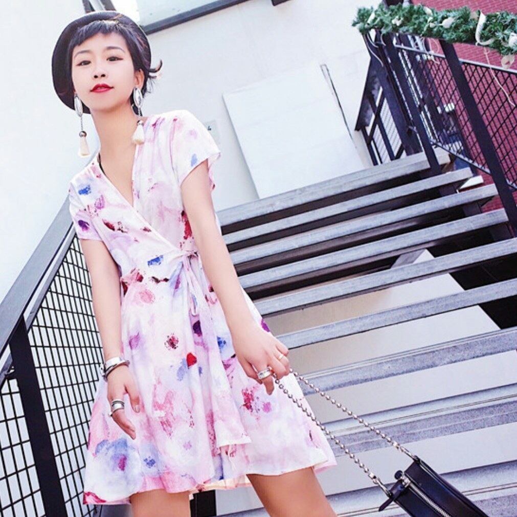 ムラ染めのような抽象柄が綺麗なカシュクールワンピース