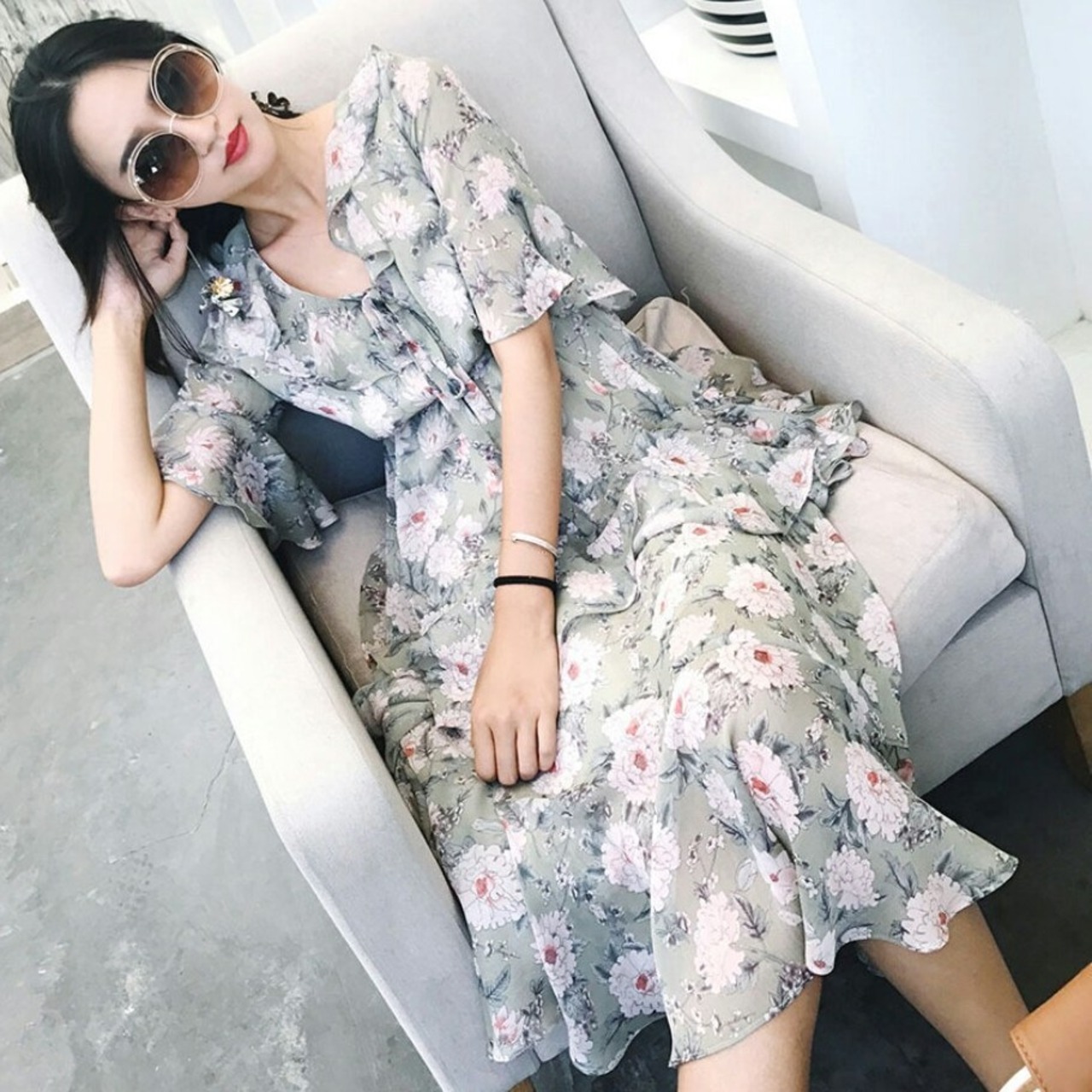 夏のデート服に着こなしたいガーリー花柄フレアワンピース