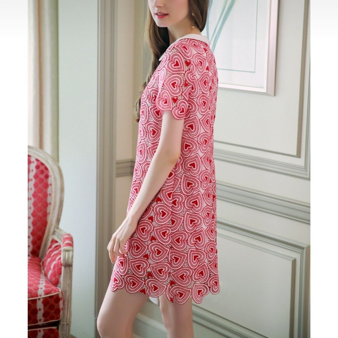 ハートの遊心がユニークなクルーネックAライン半袖ワンピース