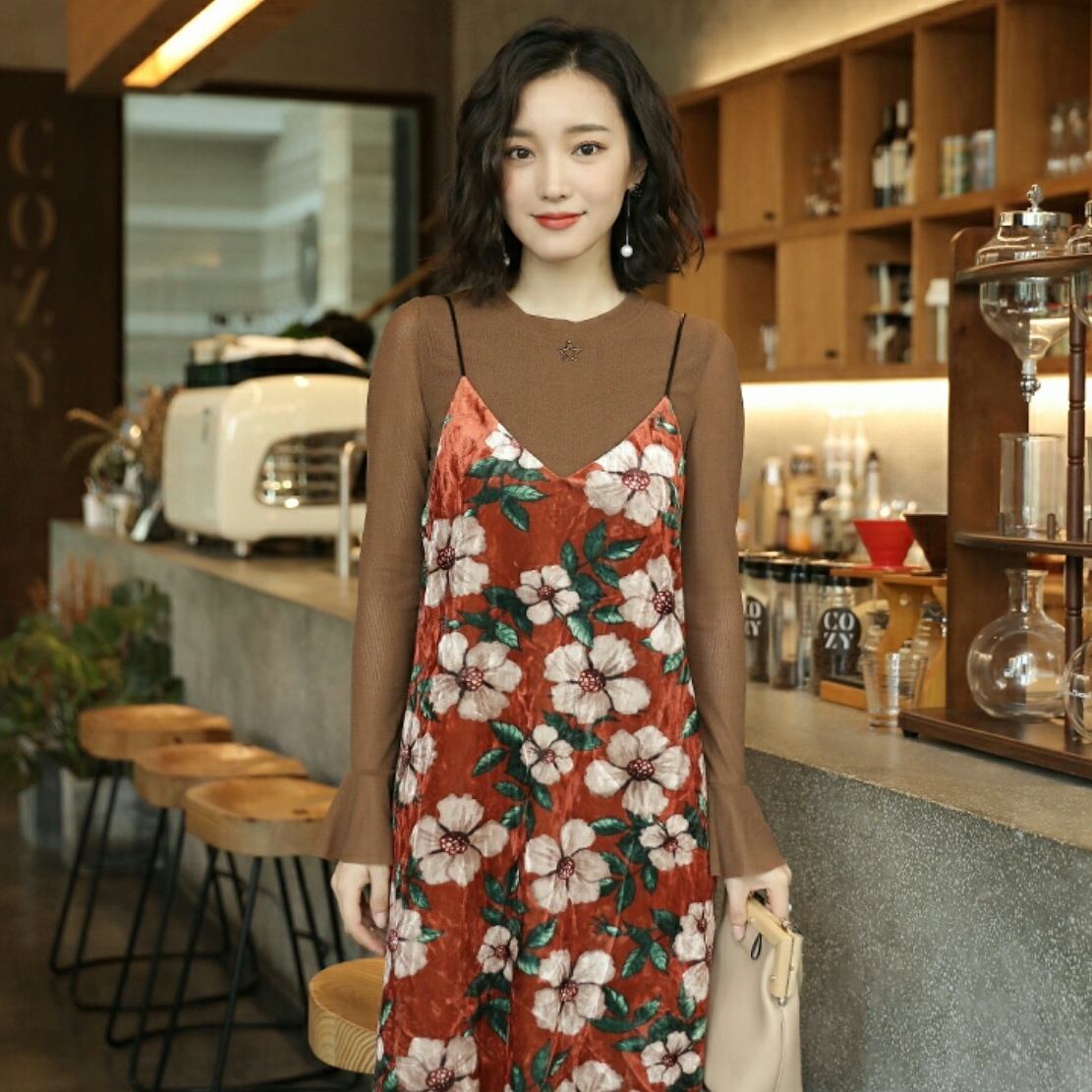 シャツ等レイヤードコーデにもお洒落な花柄キャミワンピース