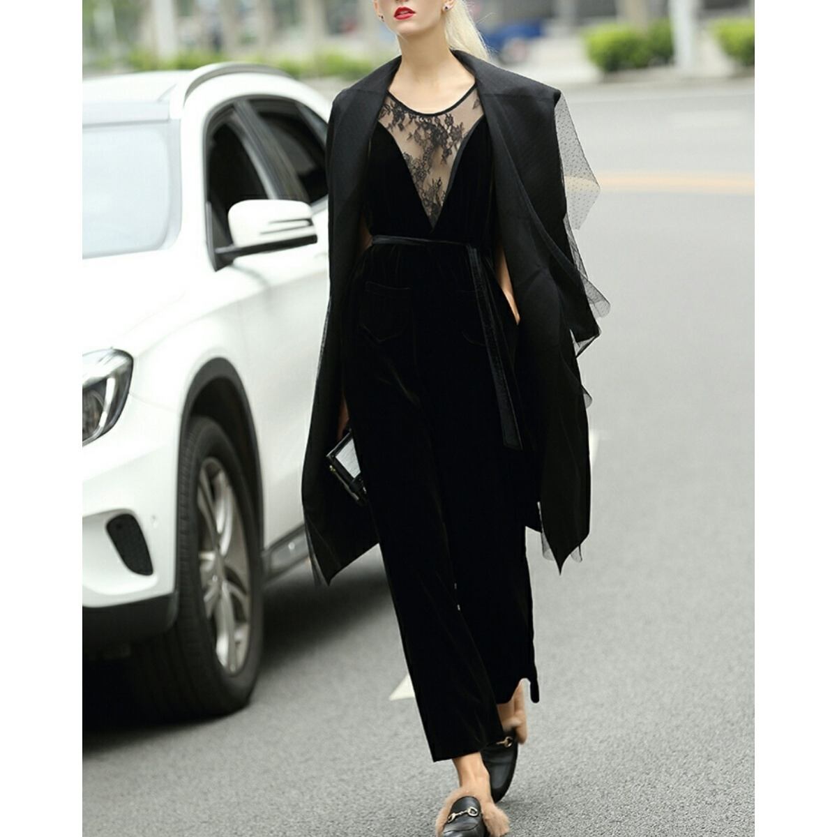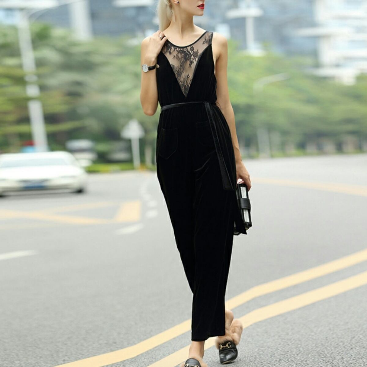 ベロア&レースの大人の色気を演出ノースリーブオールインワン