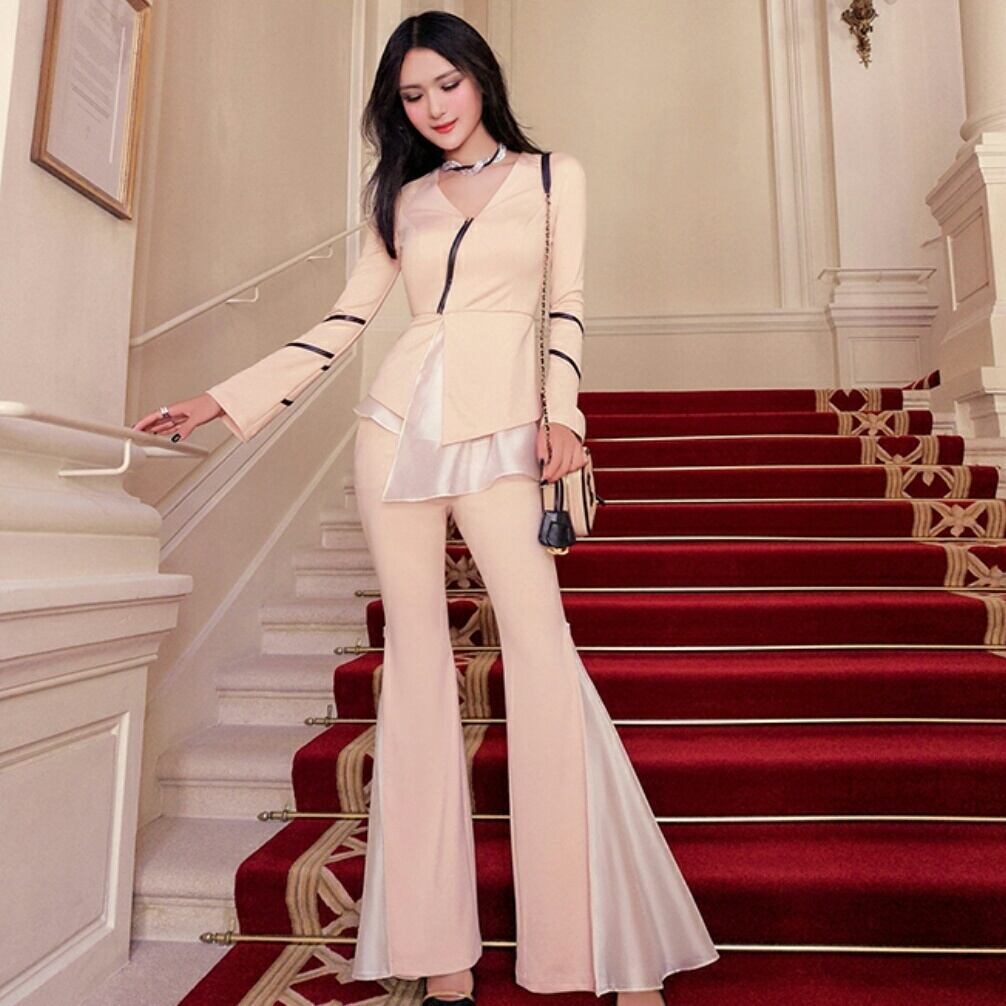 フォルムの綺麗なセットアップアシンメトリートップス+パンツ