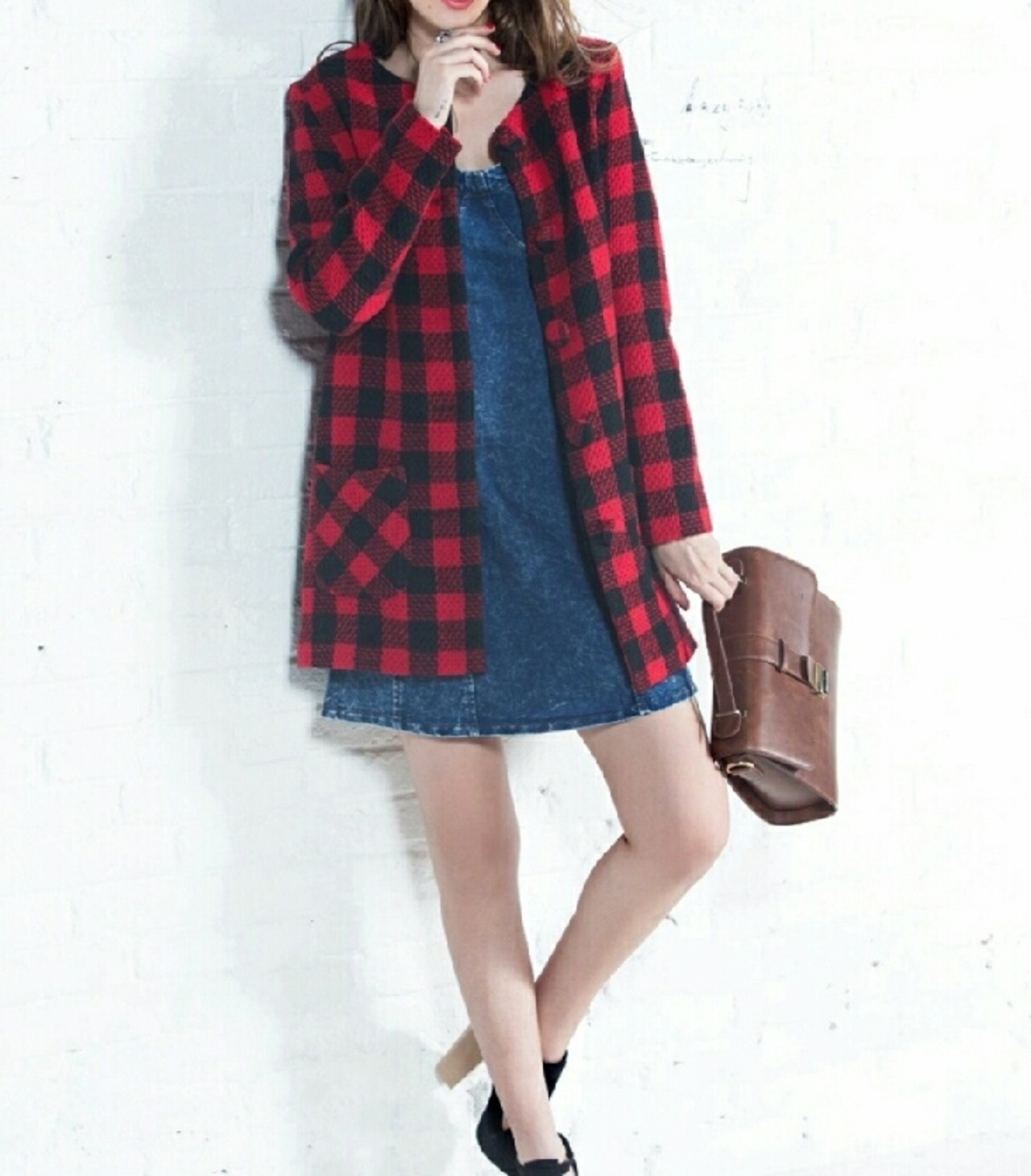 新作オシャレ♪2カラーギンガムチェックノーカラーコート