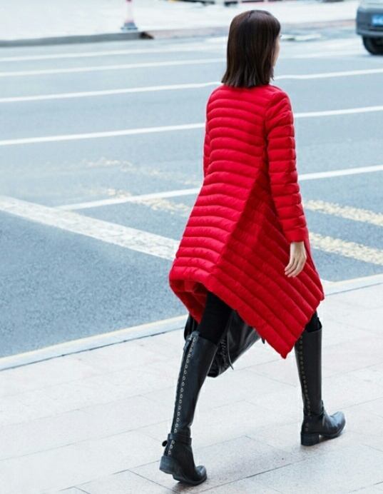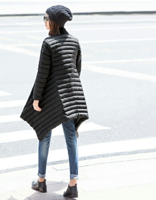 新作 オシャレ♪2色/変形ヘムラインAラインダウンコート