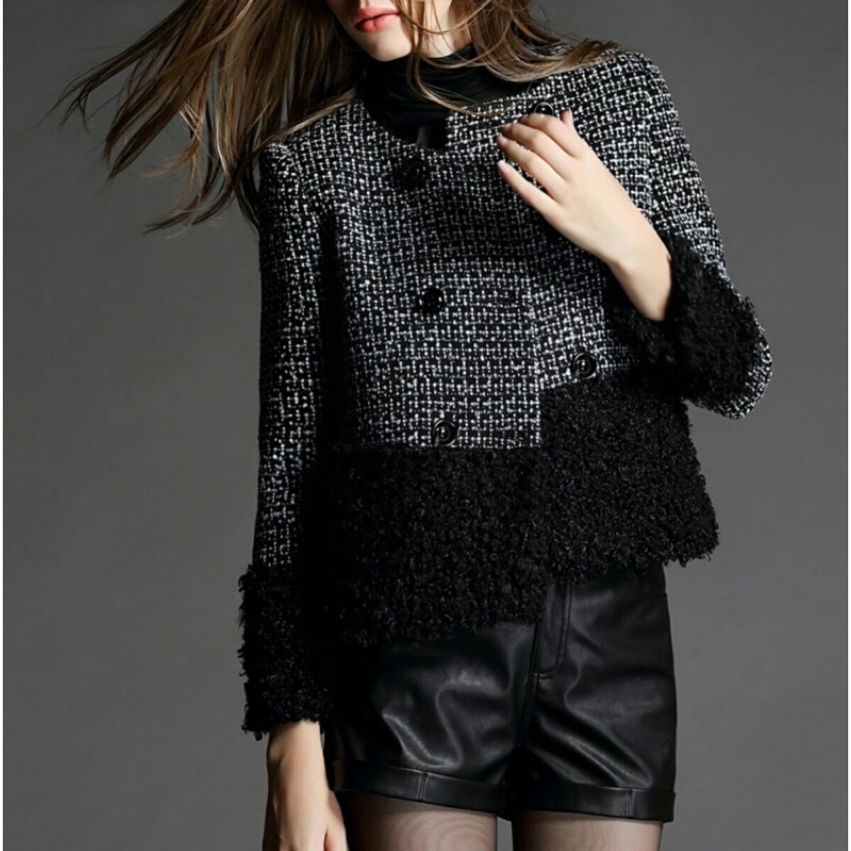 新作 オシャレ♪ファー切替ノーカラージャケット