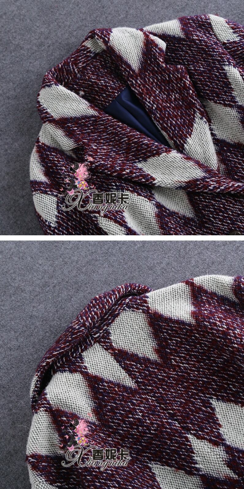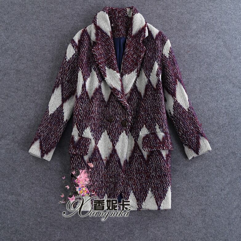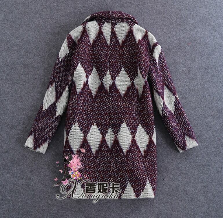 新作 オシャレ♪ノッチドカラー菱型模様コート