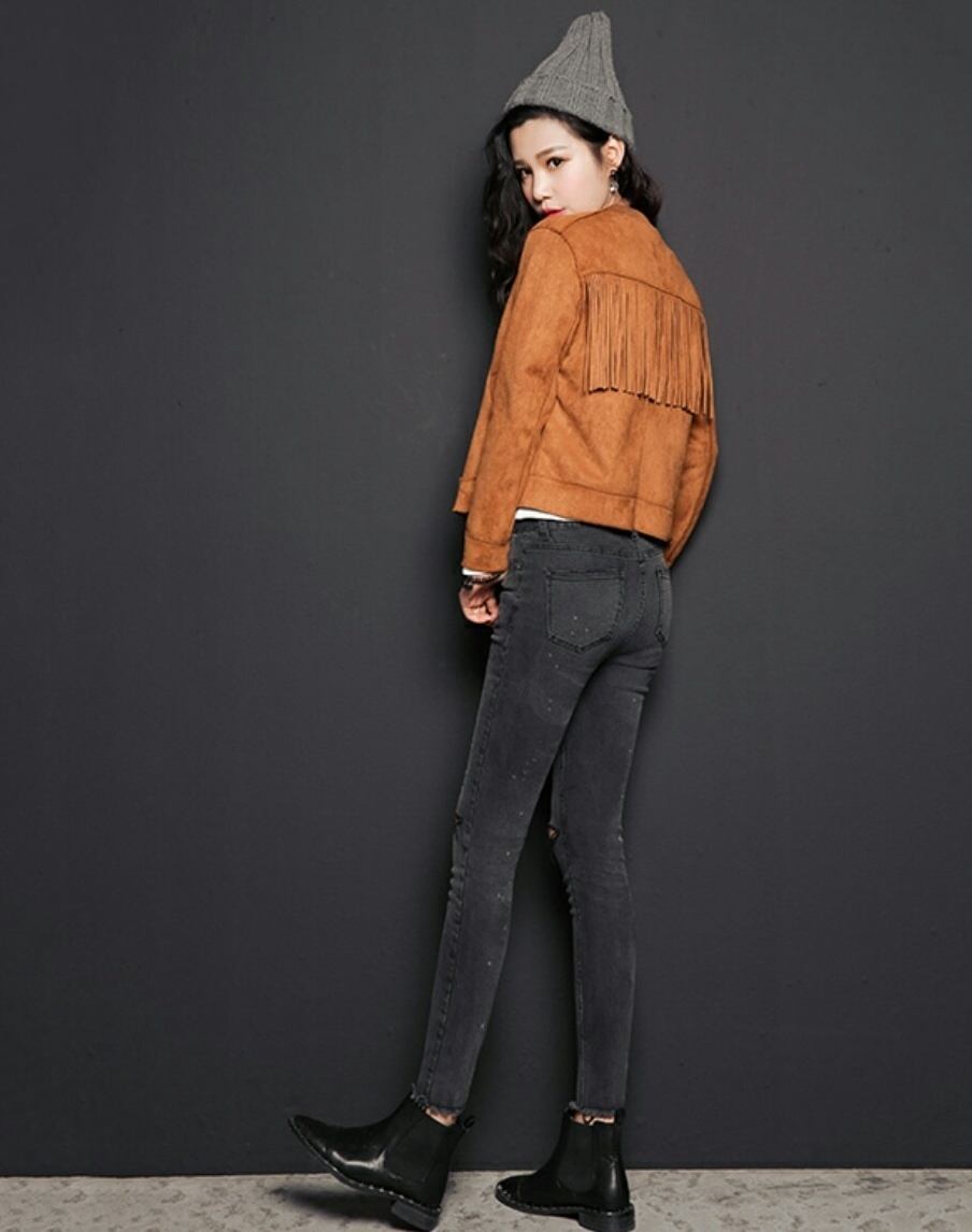 新作 オシャレ♪バックフリンジスエード調ブルゾン