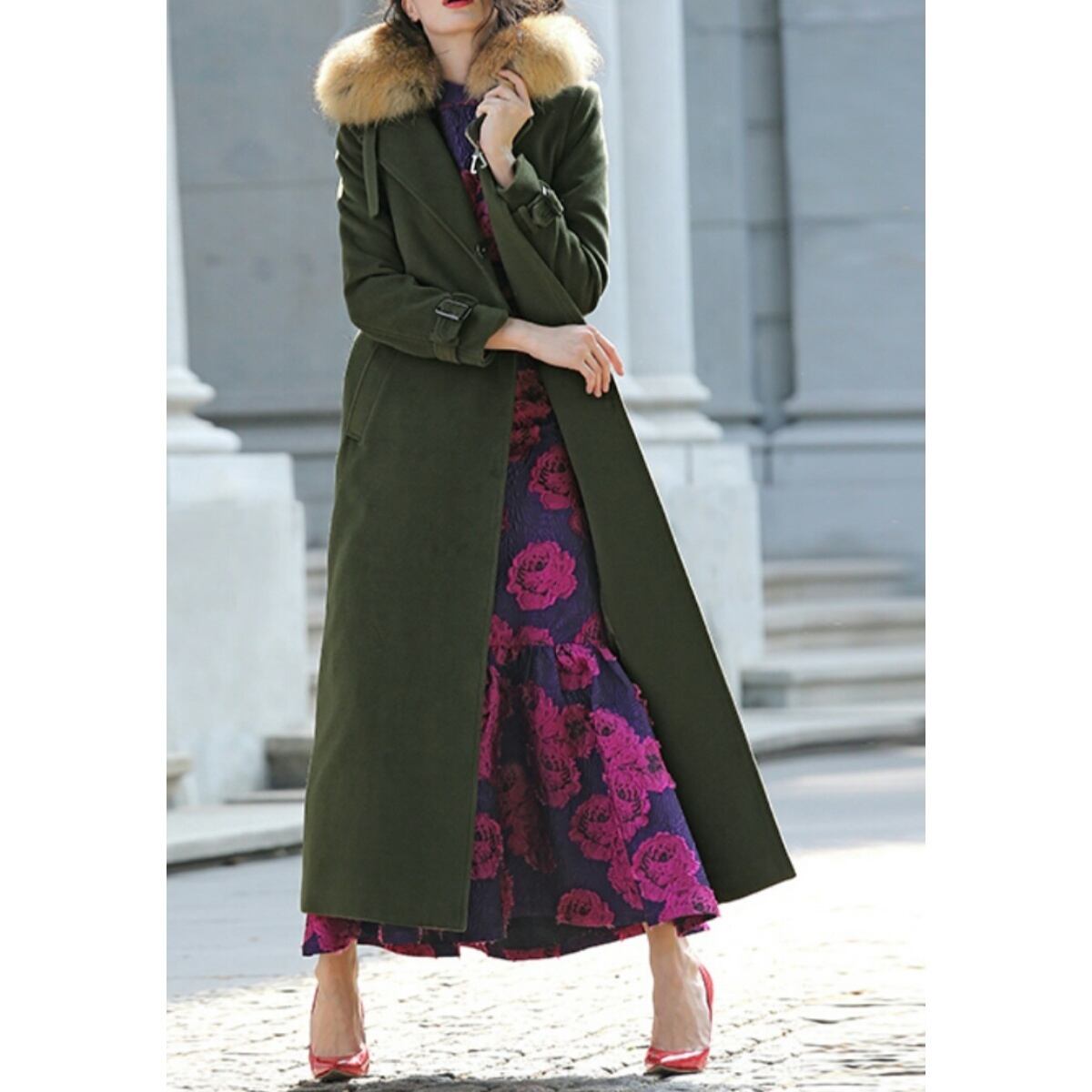 ラクーンファーで首元しっかりガード/カーキのロングコート