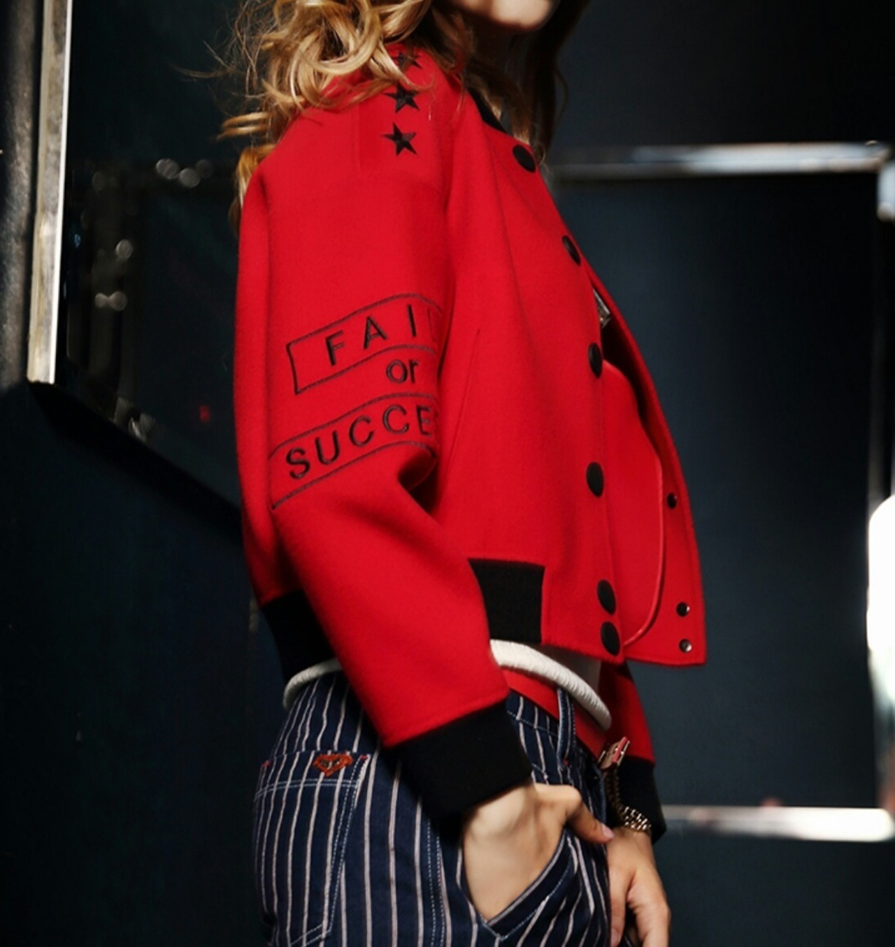 短い丈がかわいいお絵描き風の模様がユニークピンク/赤ブルゾン
