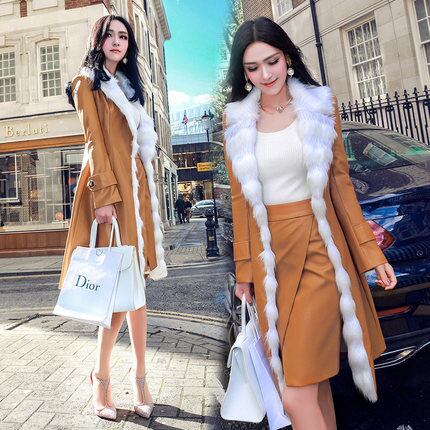 顔周り華やかホワイトファー異素材フェイク・レザーコート
