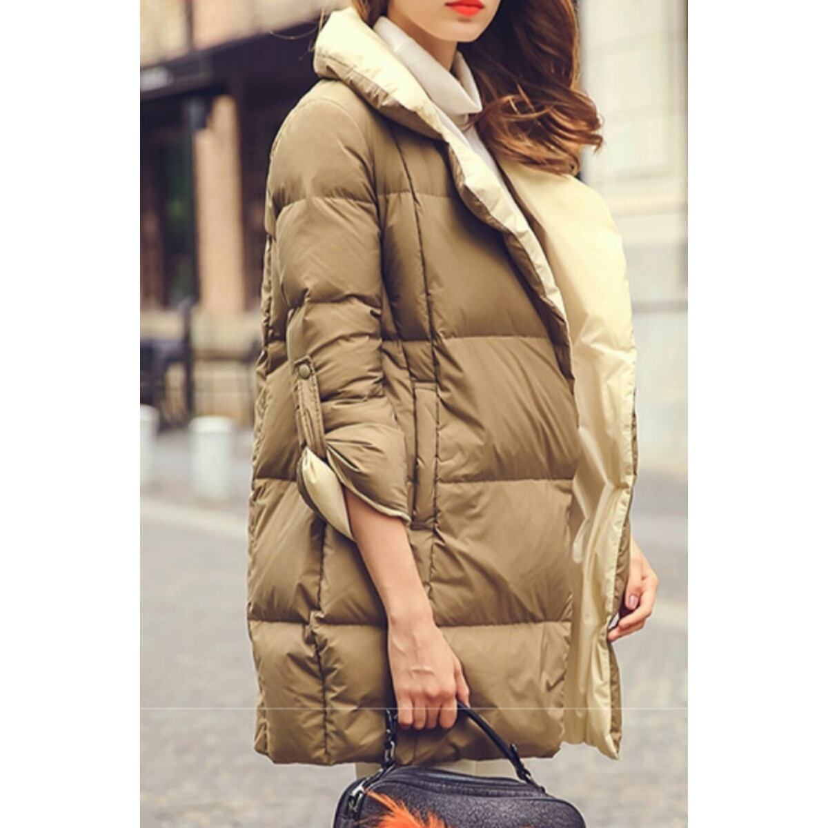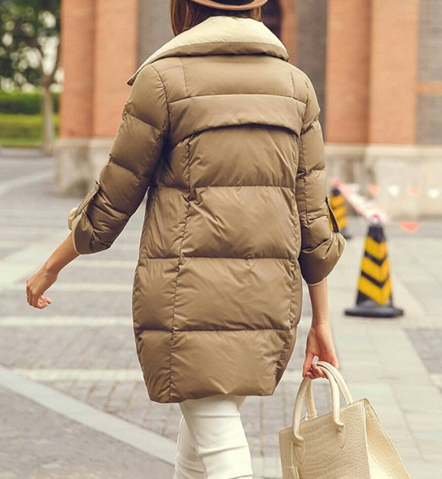 襟元バイカラーシンプルでコーデしやすいダウンコート黒グレー等