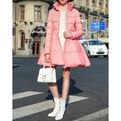 白/黒/ピンクハイネックワンピース型で可愛らしくダウンコート