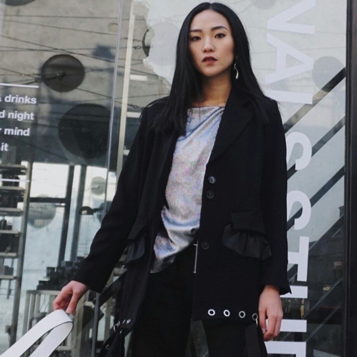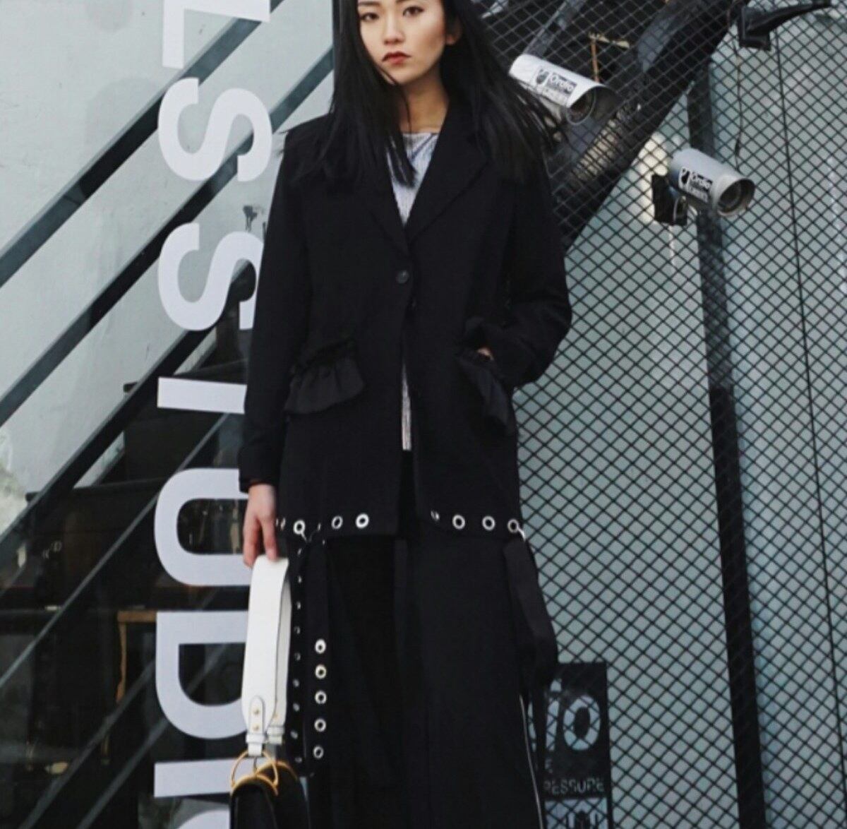 スタイリッシュでかっこいい/黒ヘムメタルドットジャケット