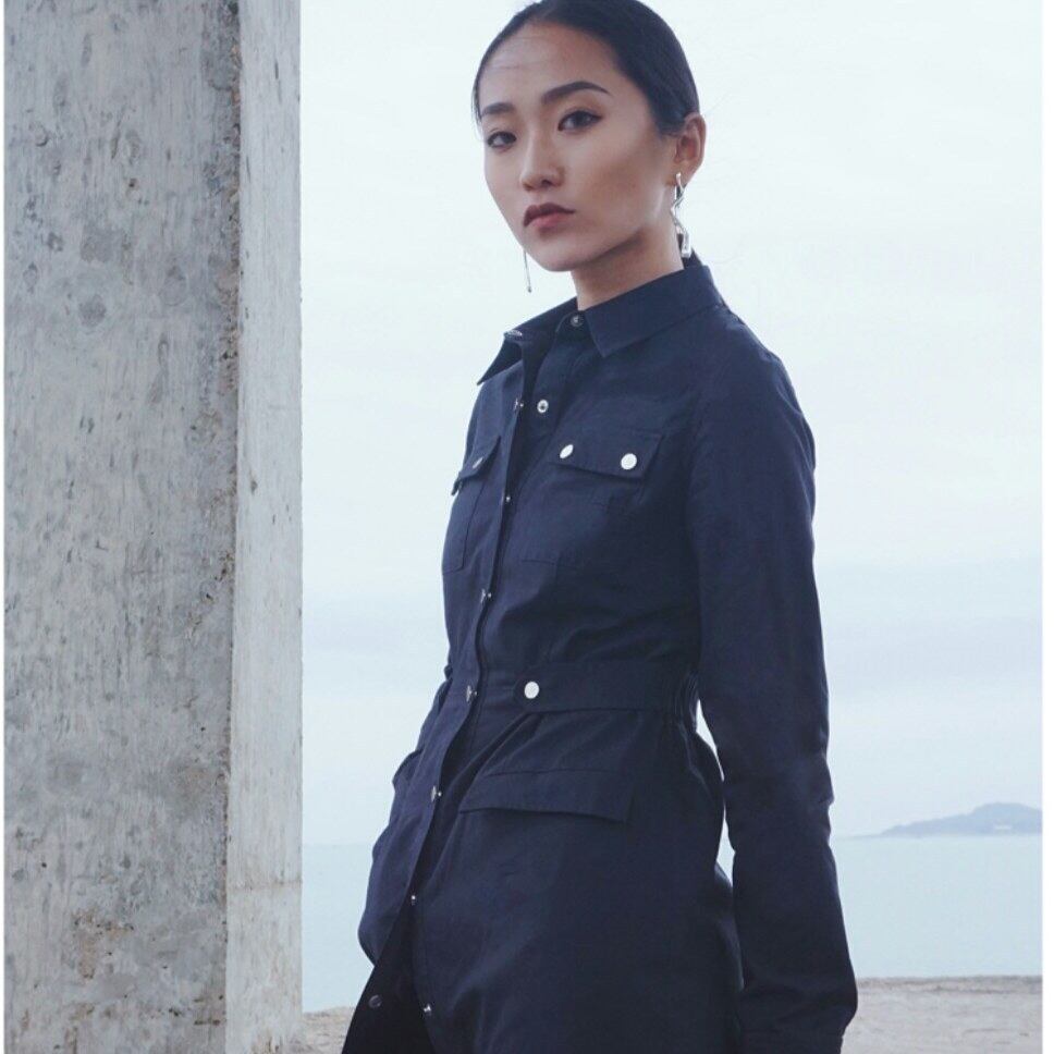 シルエットの綺麗なハンサムな着こなしハイウエストアウター