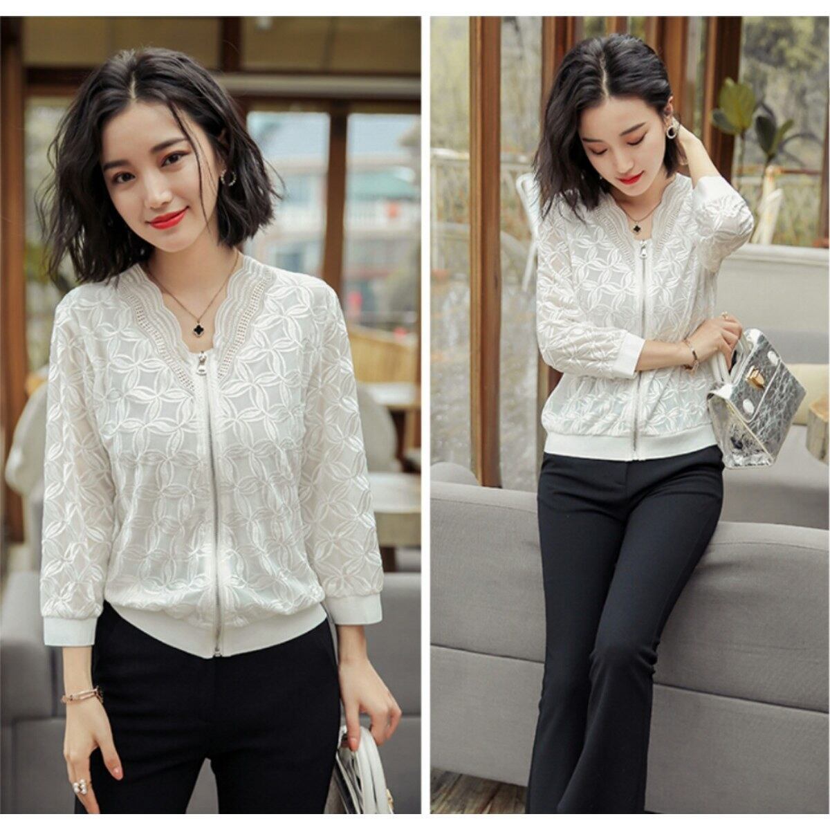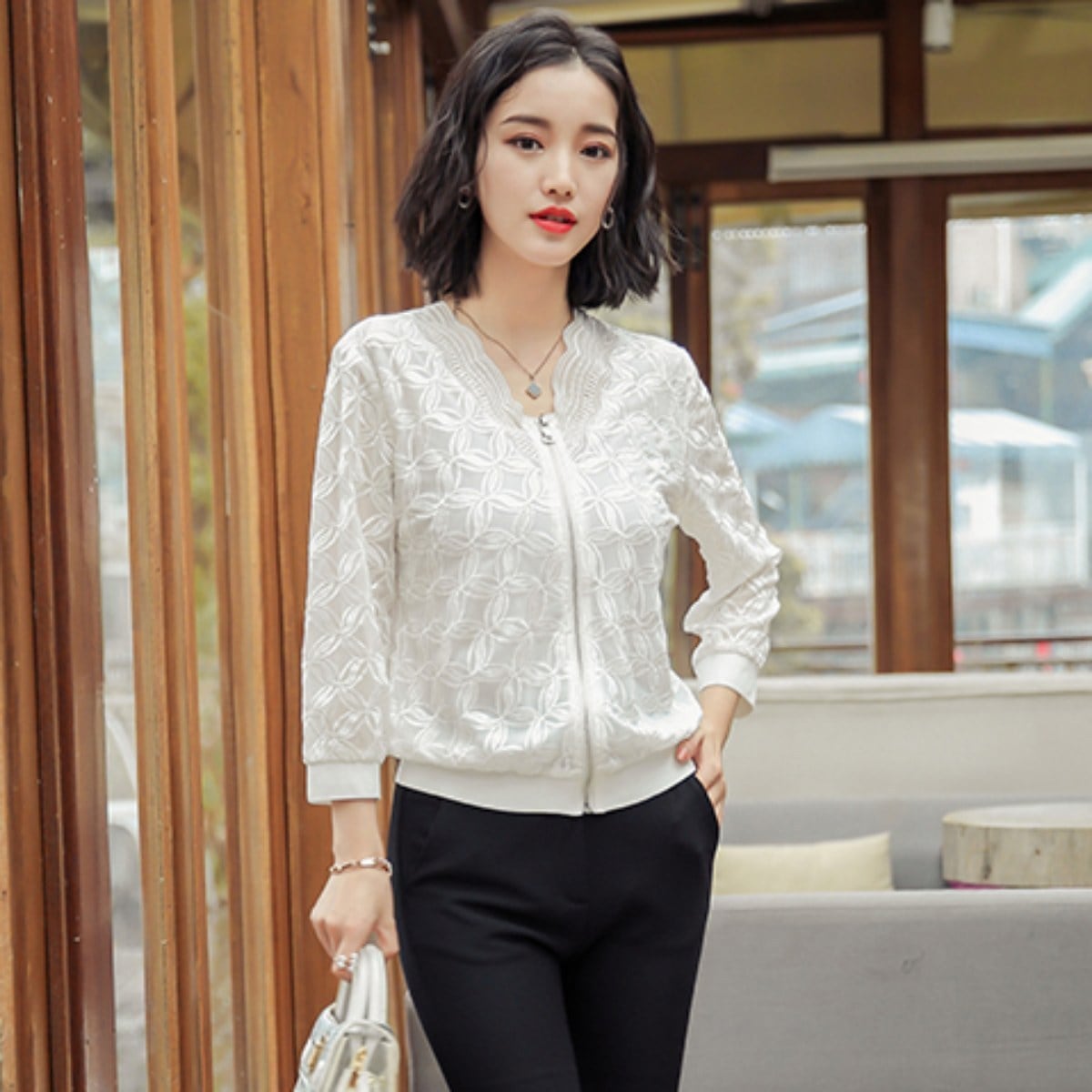 春夏コーデ羽織ものに白/黒模様がおしゃれな薄手ブルゾン