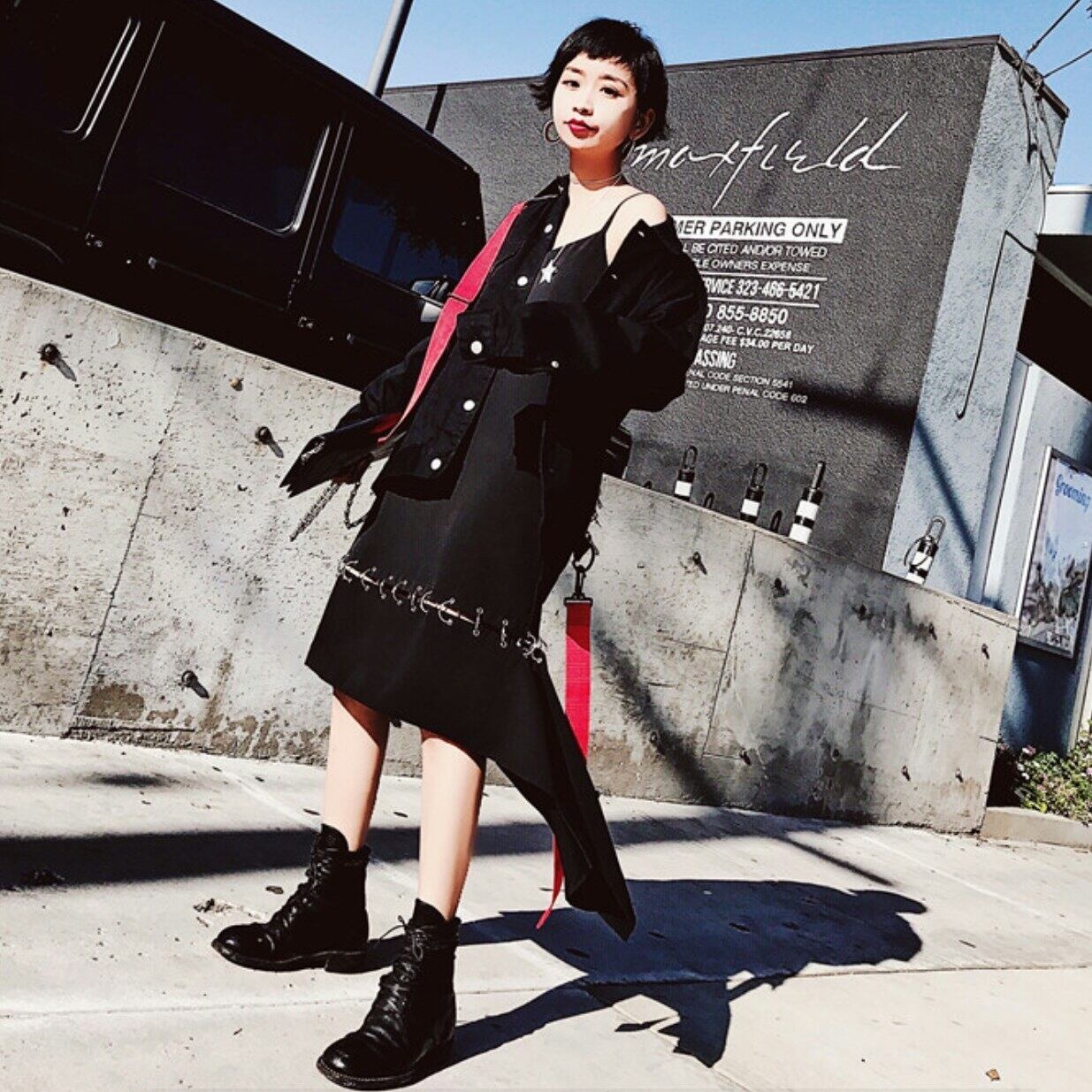 ミニ丈ボトムスコーデがおしゃれ/赤ポイント大きいサイズGジャン