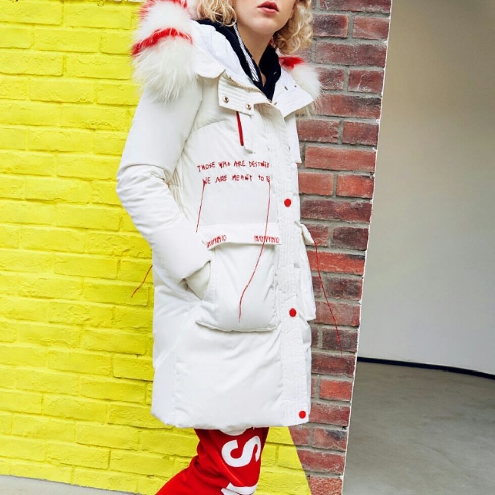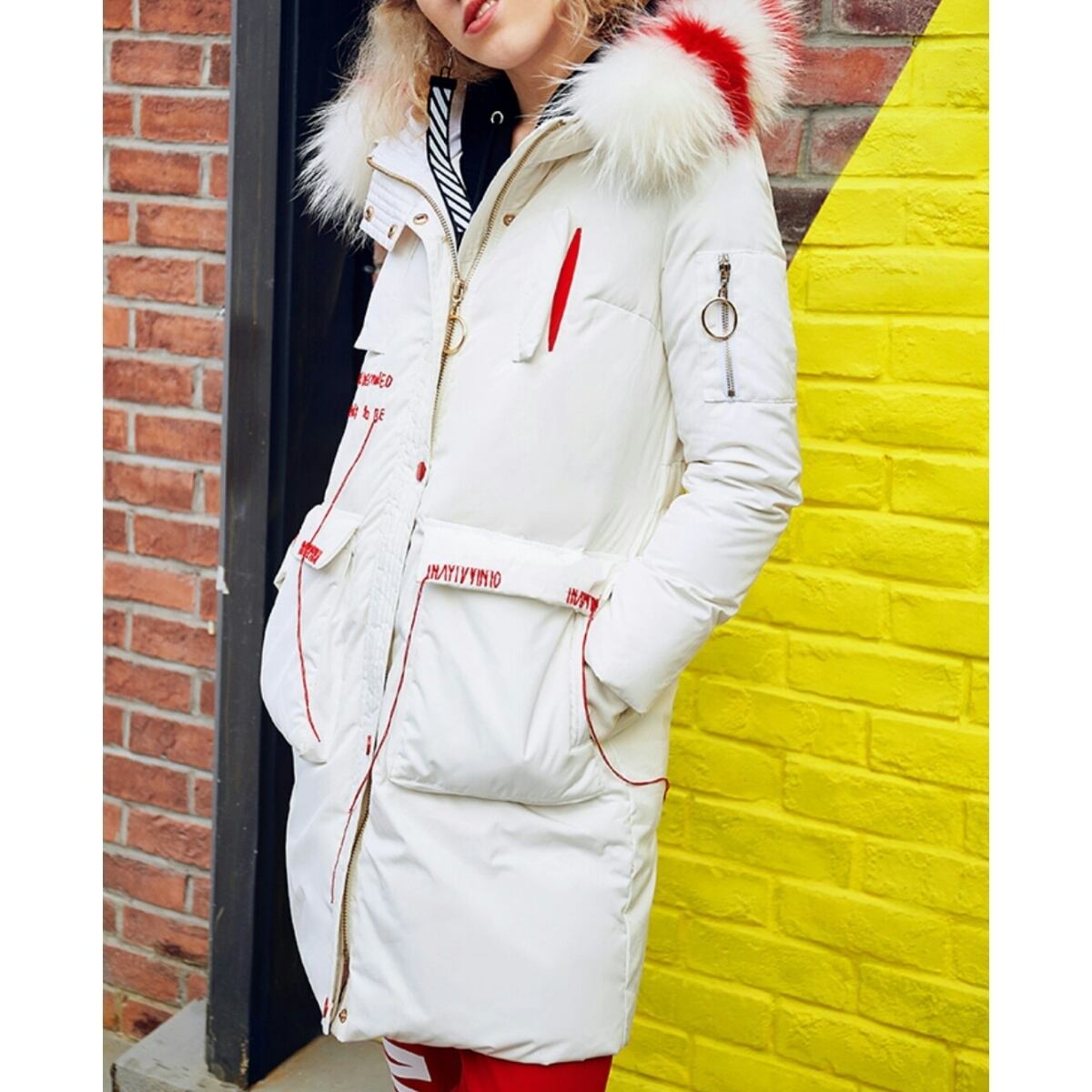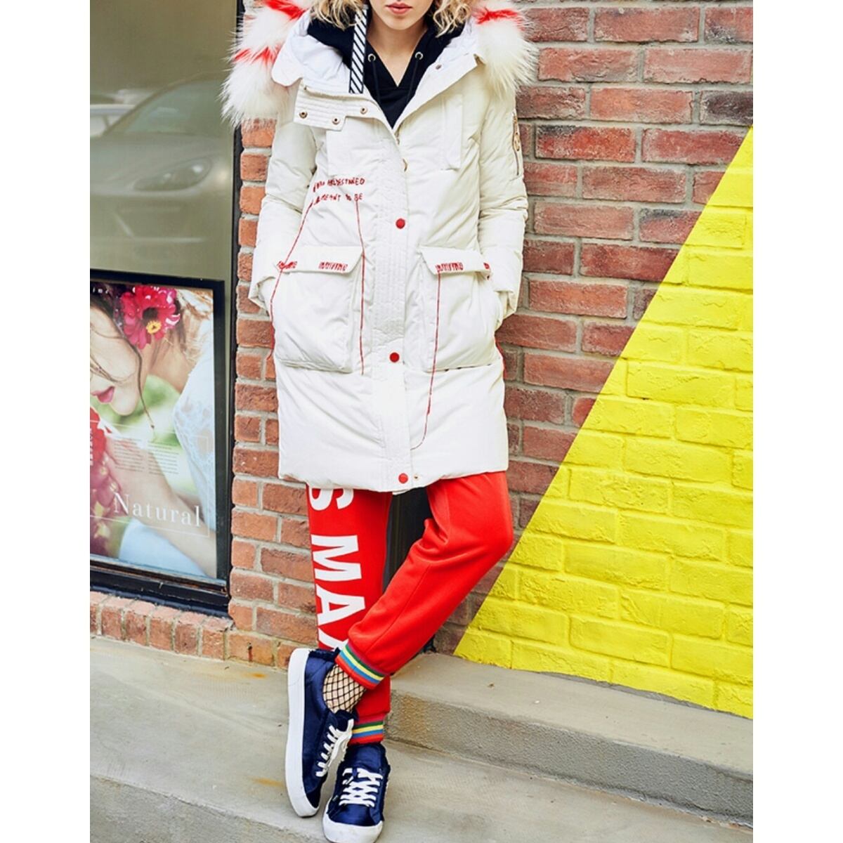 ファッショナブルなラクーンファーボーダー&ロゴダウンコート