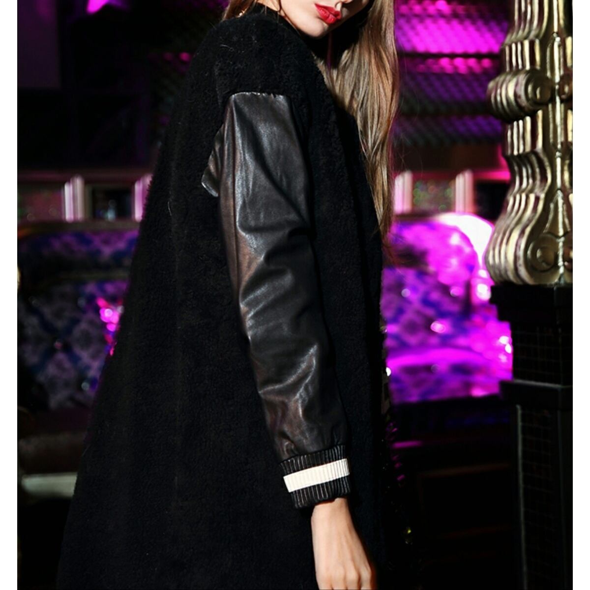 トリミングラムファーとレザー異素材/温かいスポーティなコート