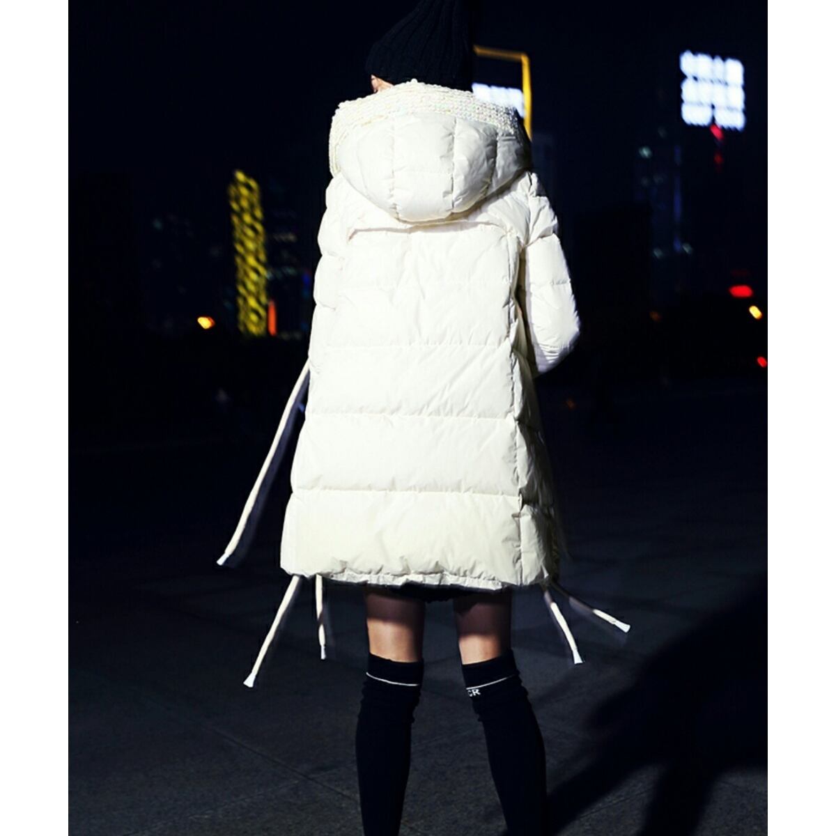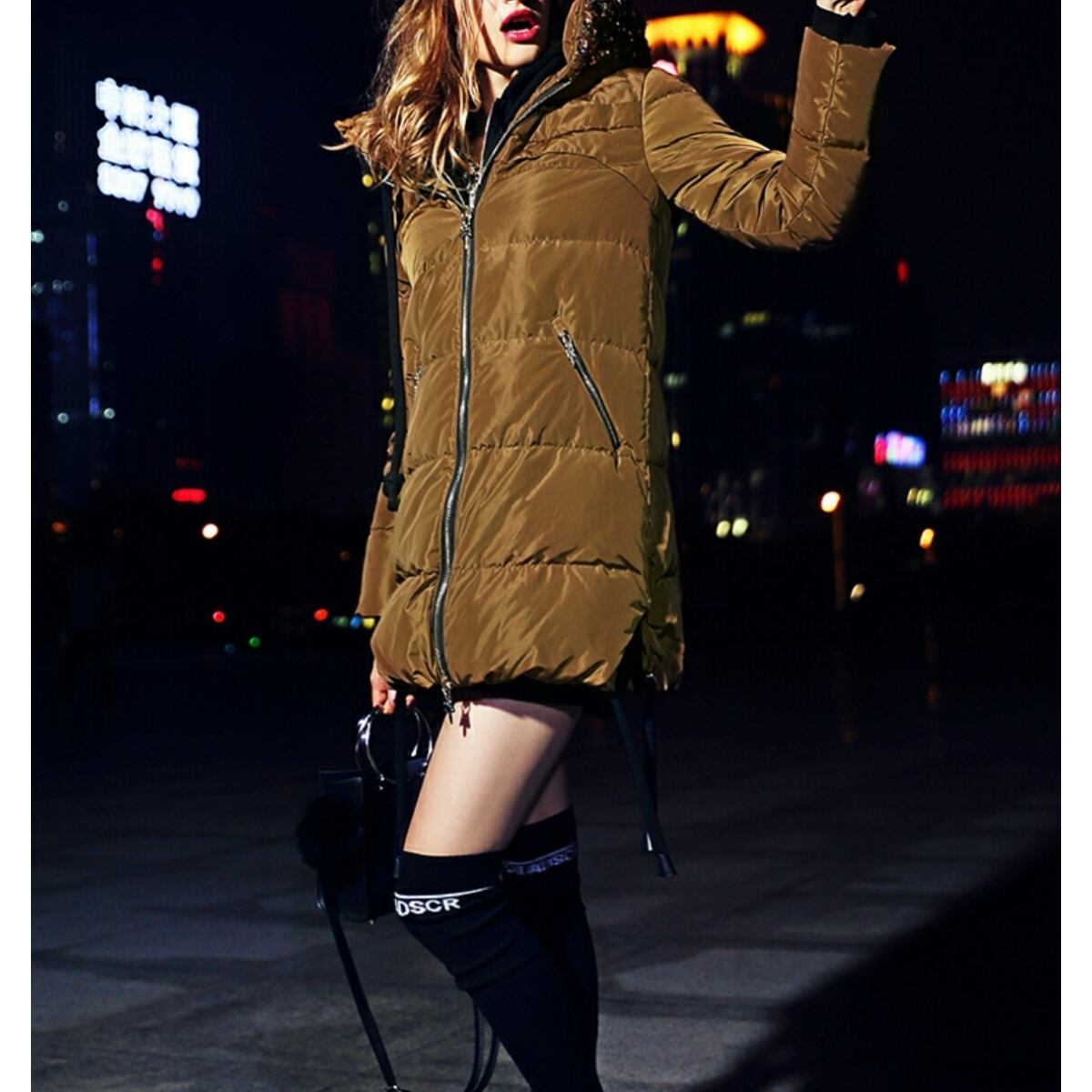 フードスパンコールがリュクスなさらっと着られるダウンコート