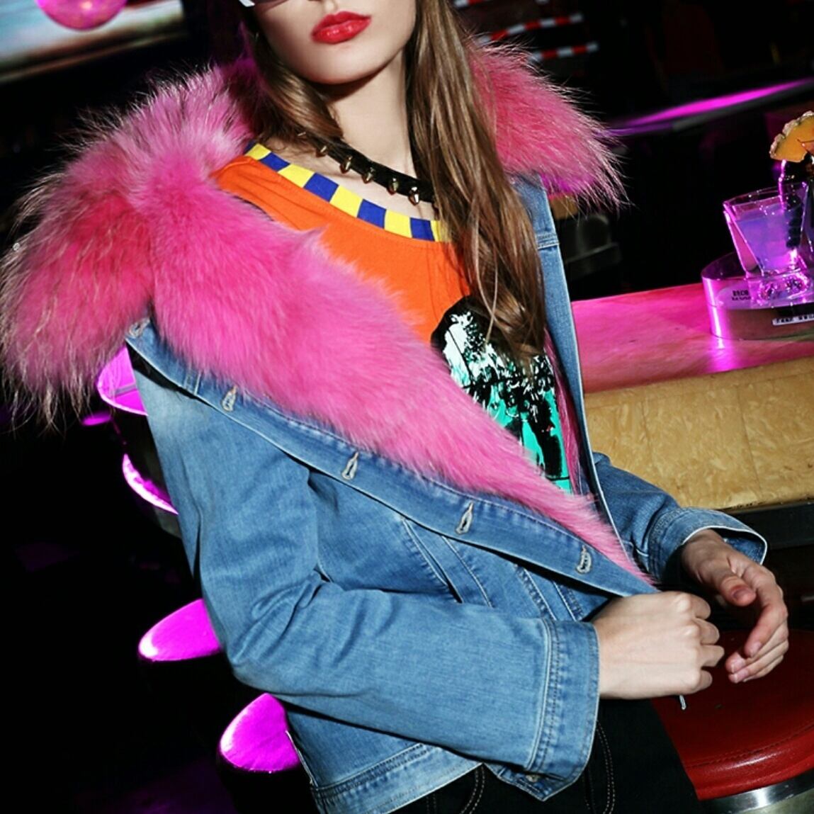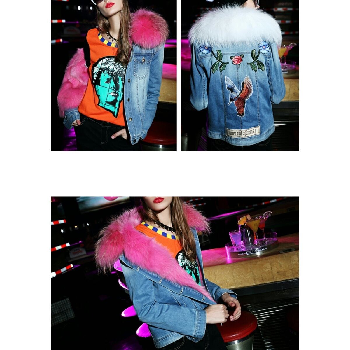 襟元ラクーンファー/裏地までふわふわのデニム異素材ジャケット