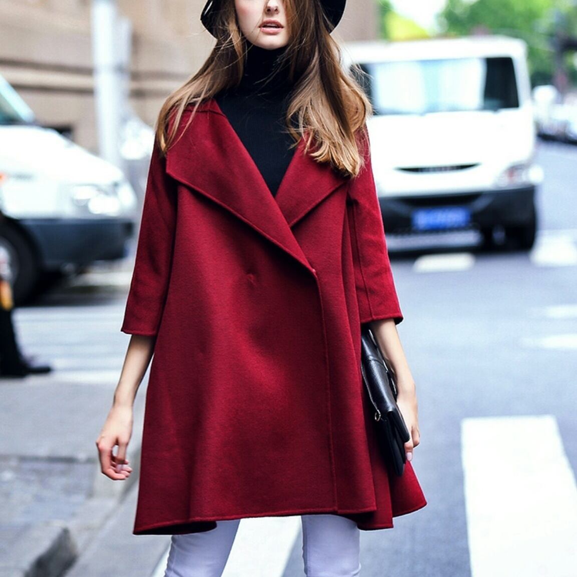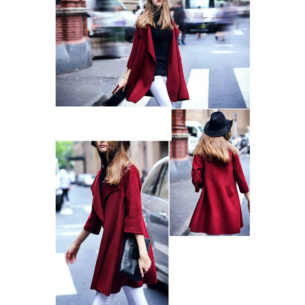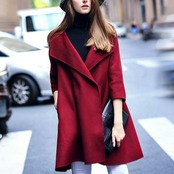 ワンピースのようなフレアラインが女性らしいウールコート赤など