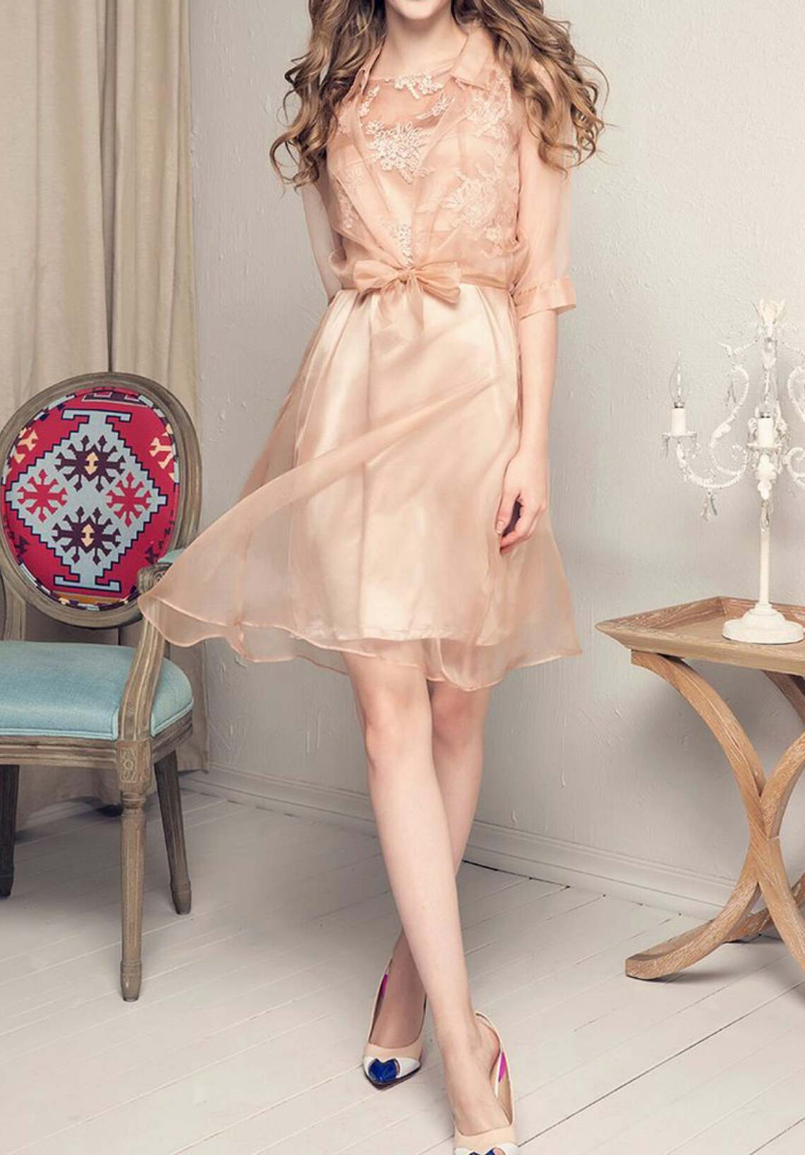 新作 オシャレ♪2色/フラワーモチーフ刺繍フレアドレス