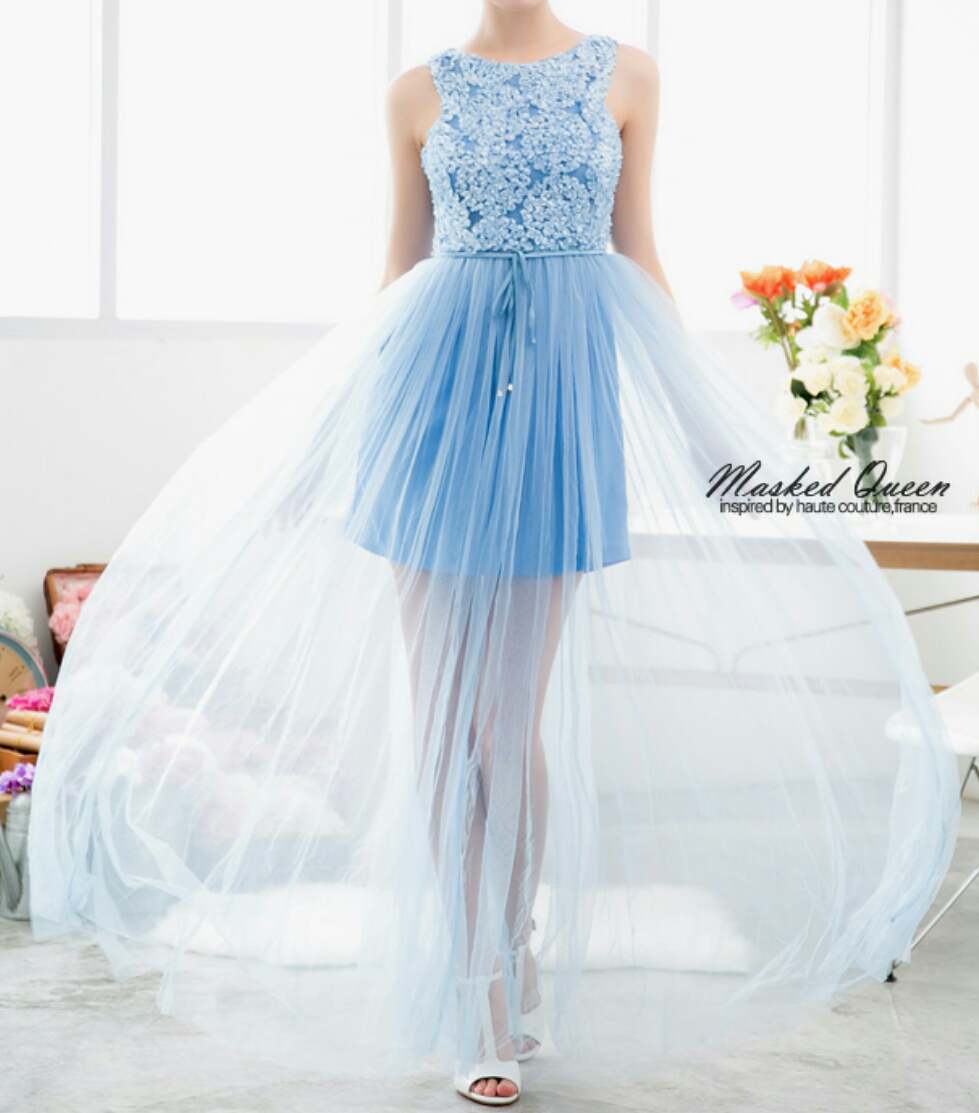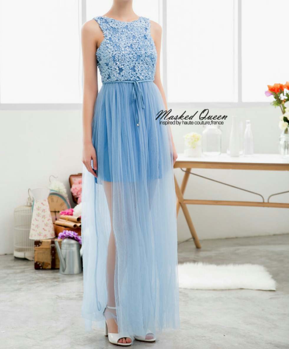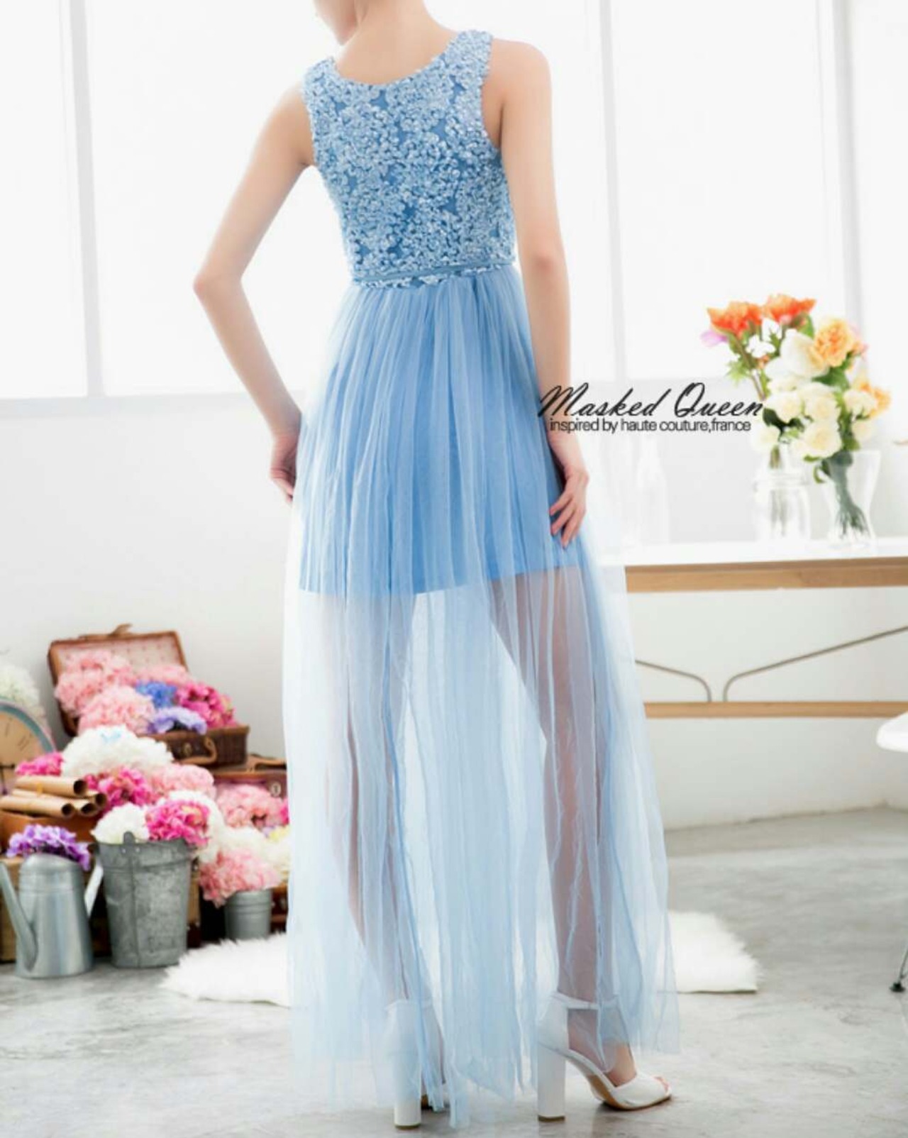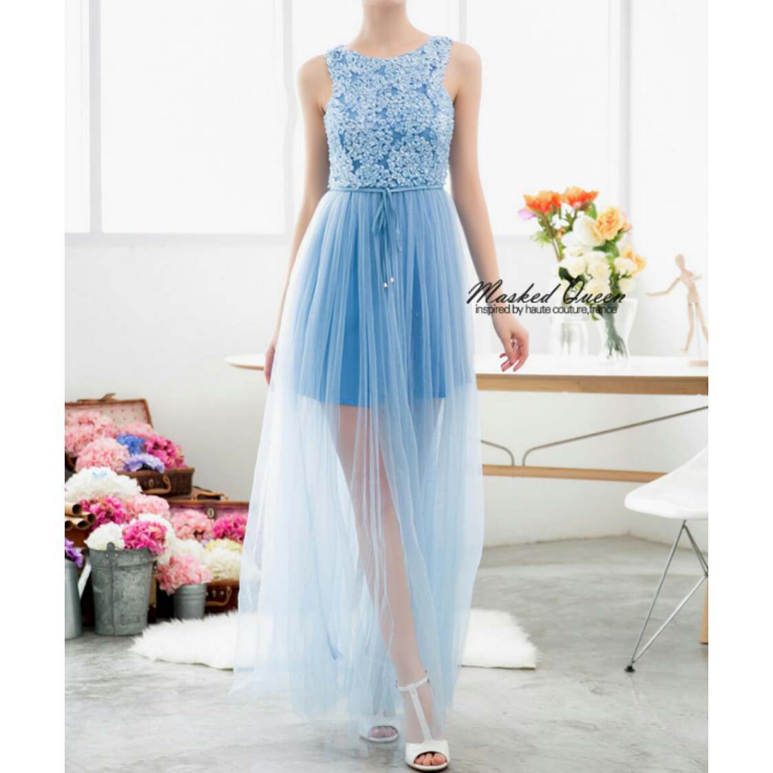 新作オシャレ♪フラワーモチーフトップシアーフレアドレス
