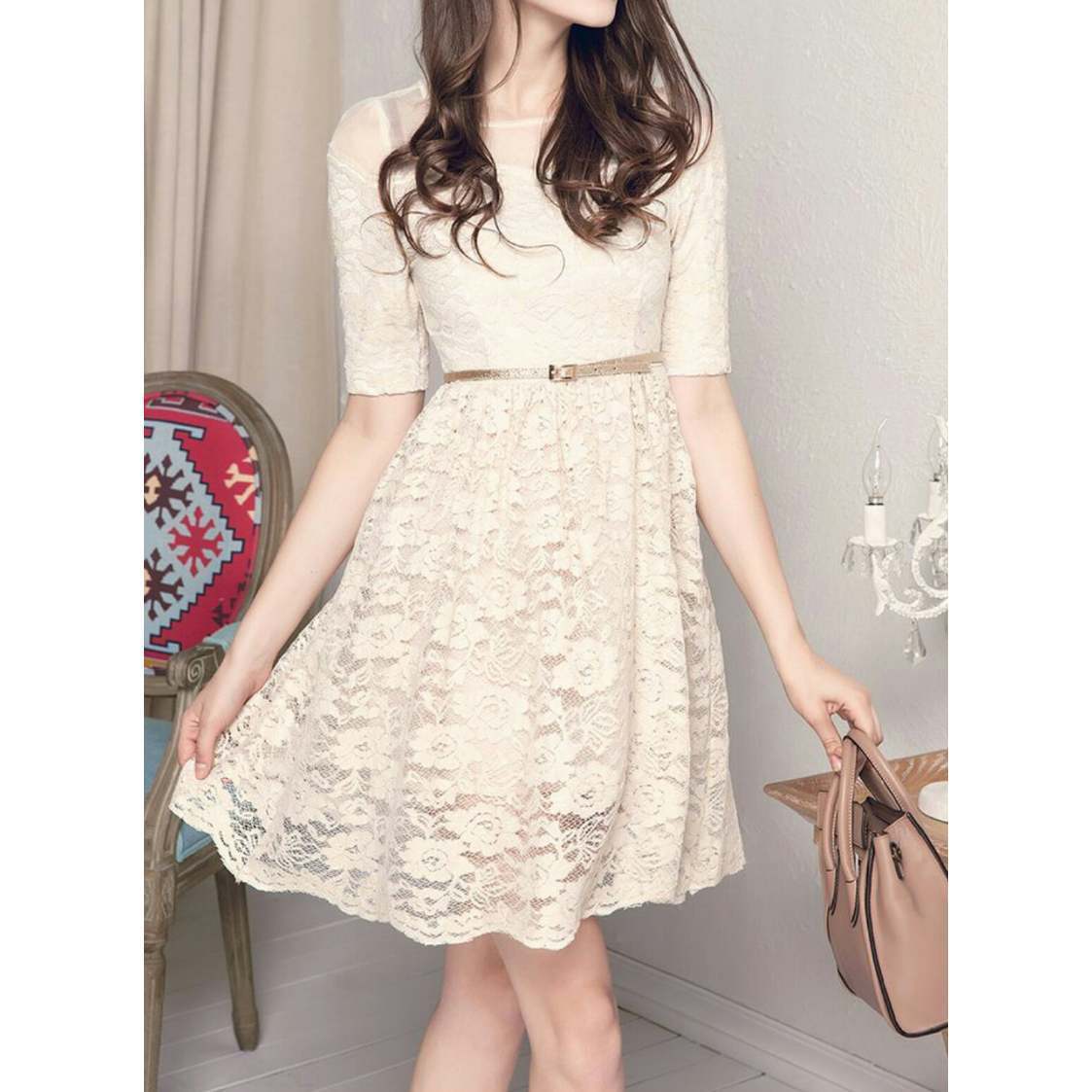 新作 オシャレ♪ショルダーシアーフラワーレースドレス