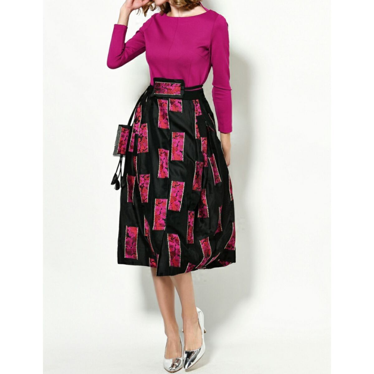 新作 オシャレ♪ハイウエストレトロフラワー模様ドレス