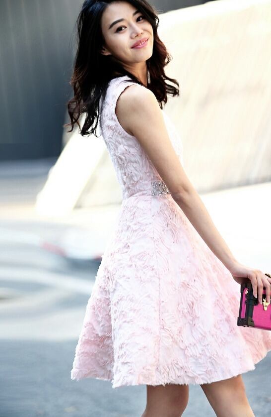 新作 オシャレ♪2色/ウエストビジュー立体ドレス