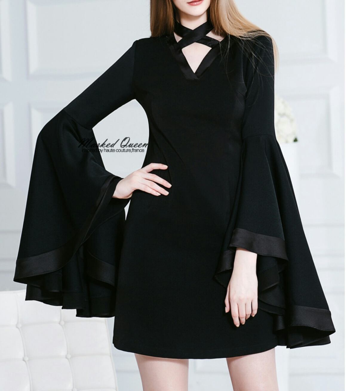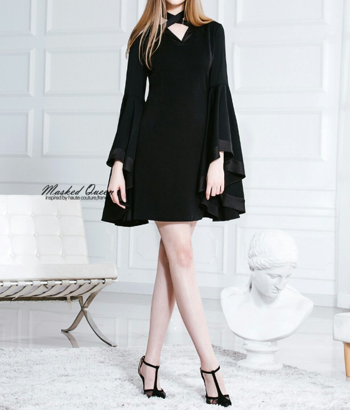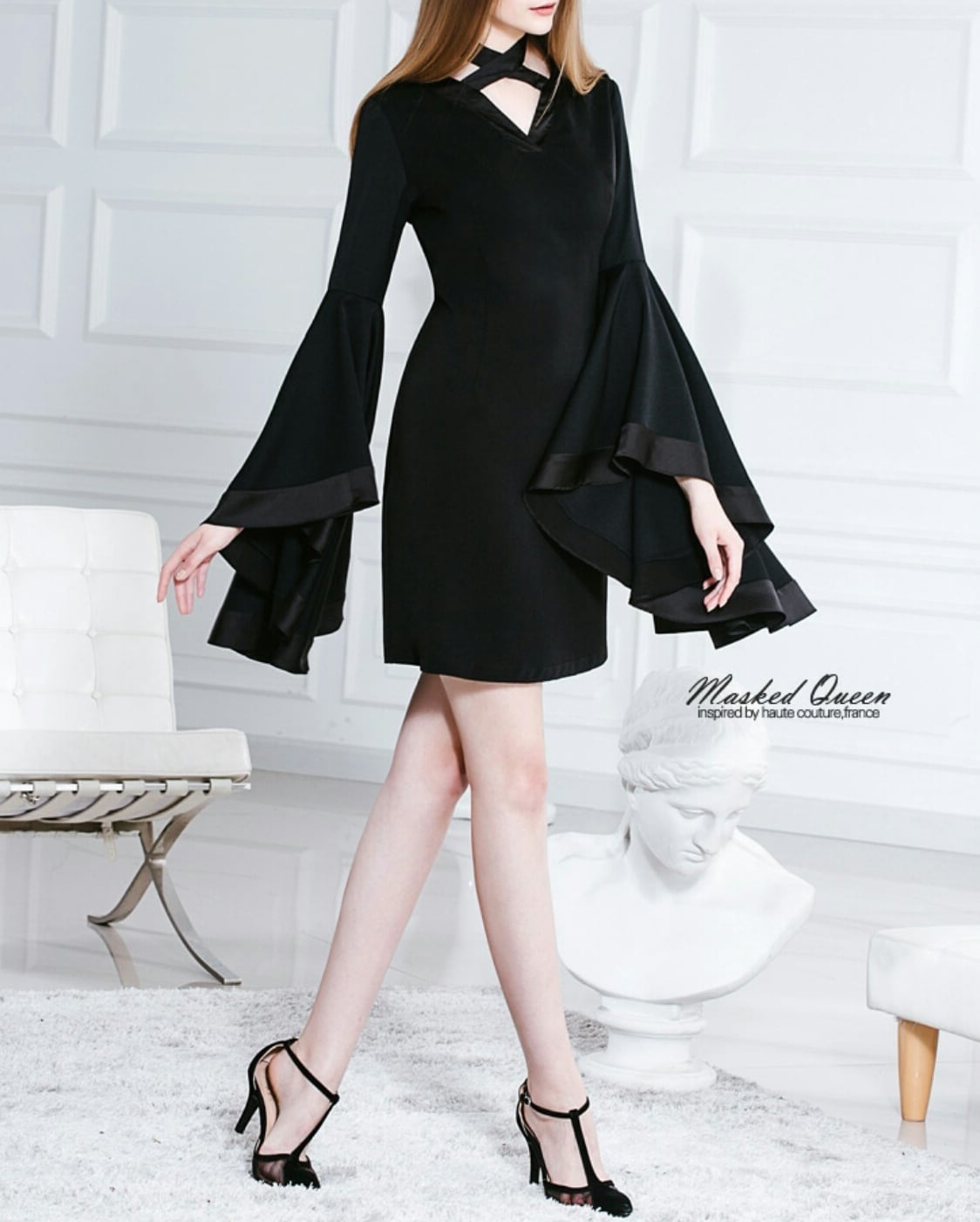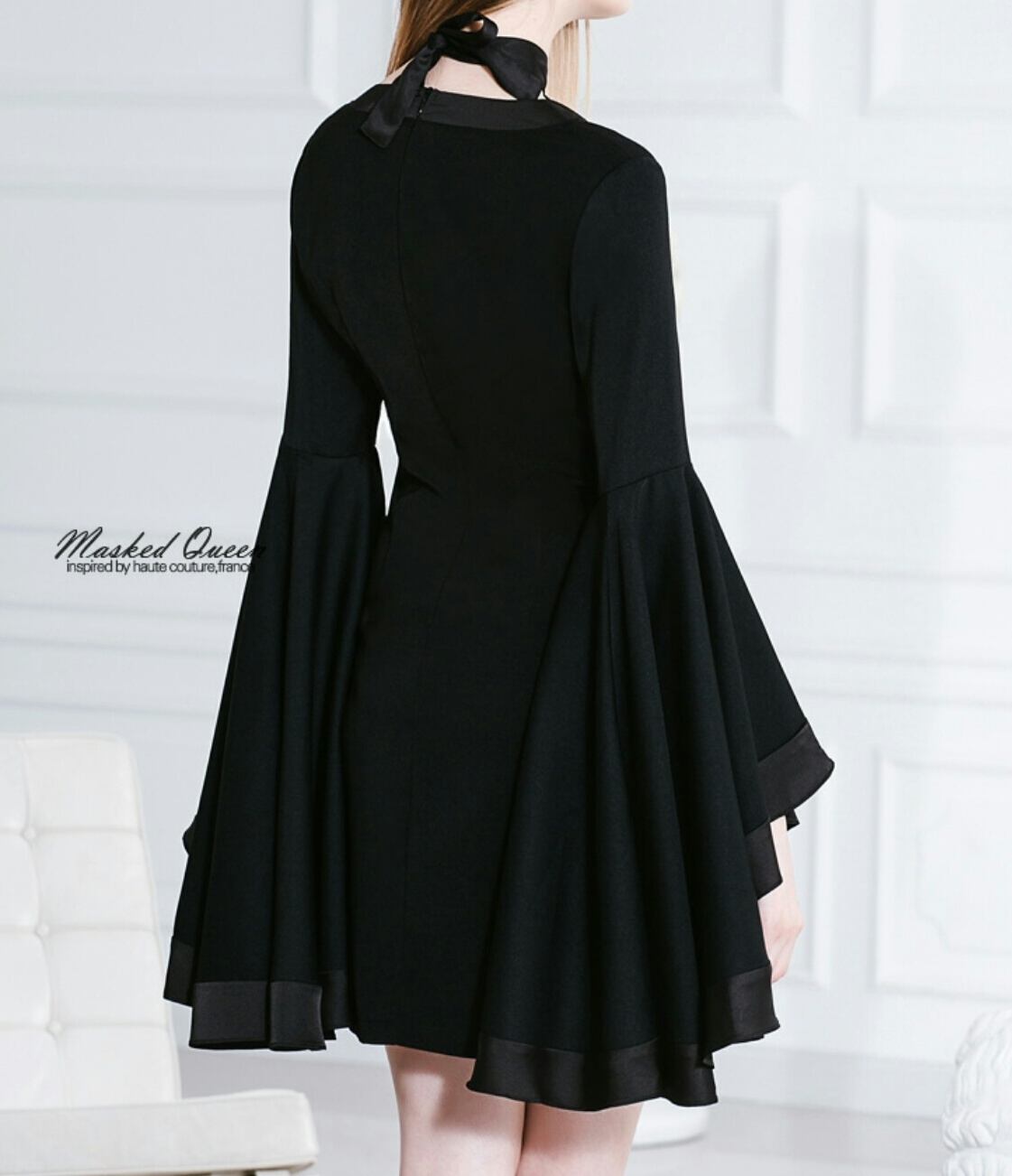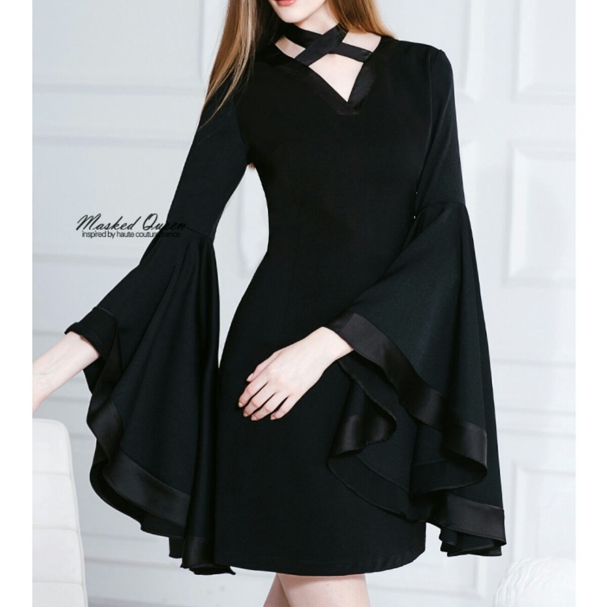 新作 オシャレ♪クロスカラー/レトロ袖フレアドレス