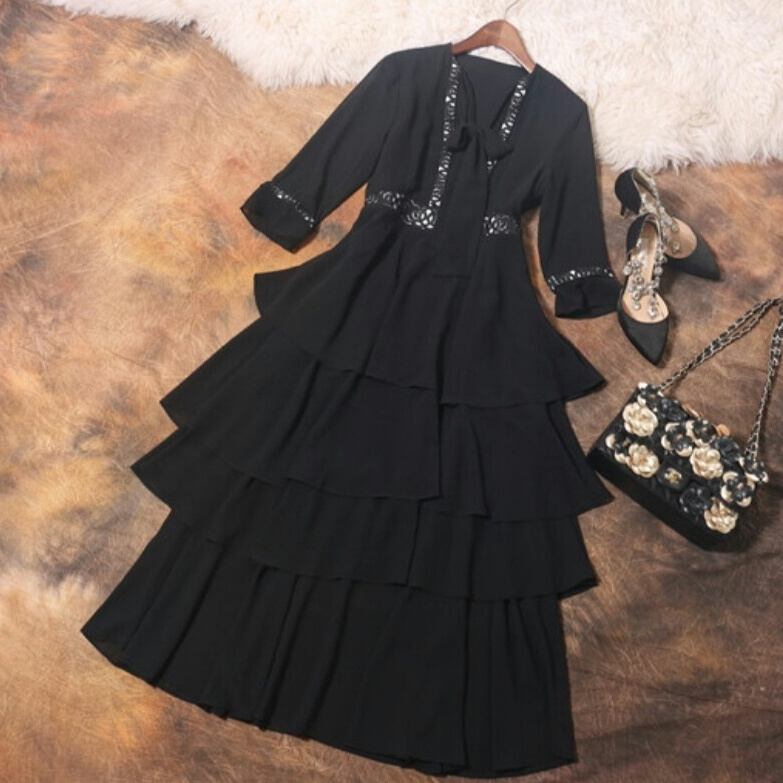 新作 オシャレ♪ポイントレースティアードロングドレス