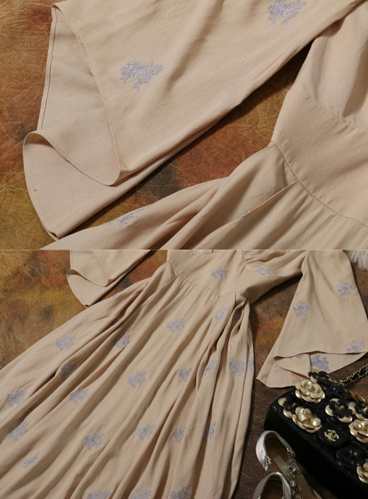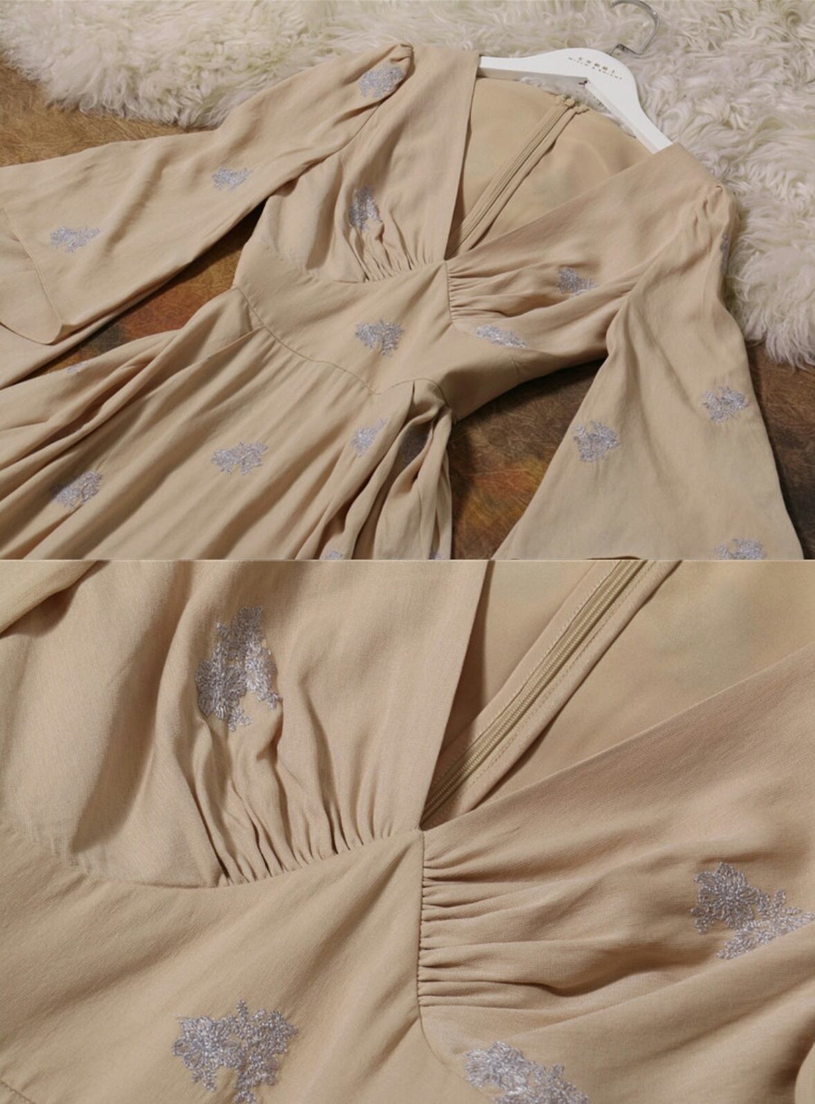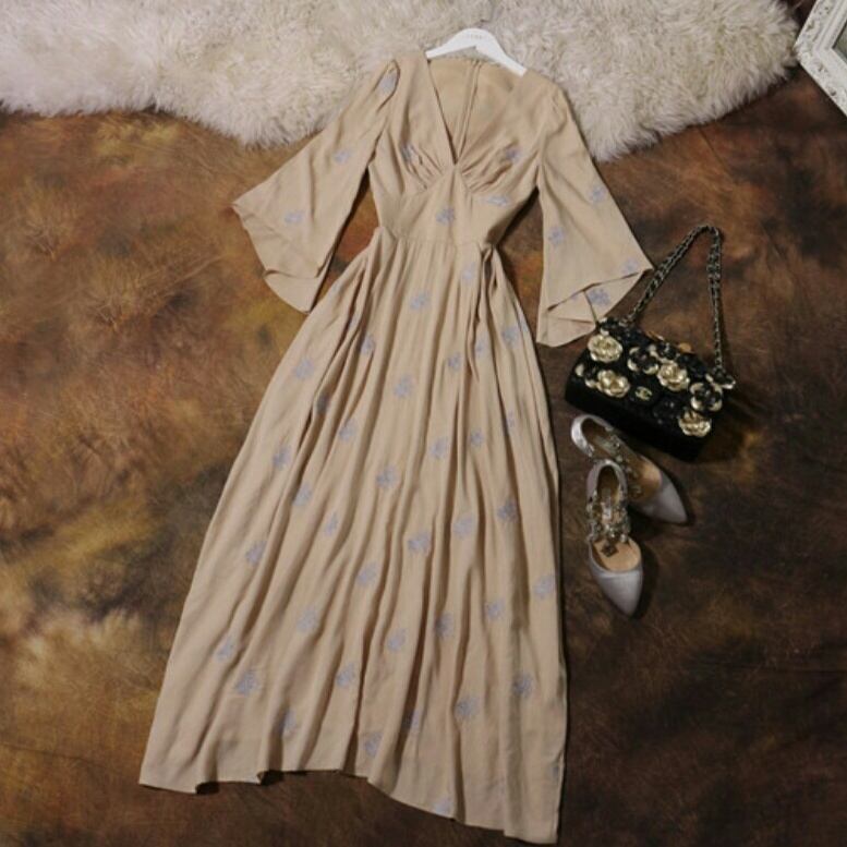 新作 オシャレ♪刺繍模様Vネックロングドレス
