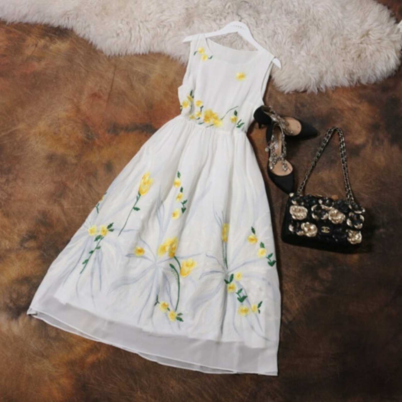 新作 オシャレ♪エレガント/フラワー刺繍模様ドレス