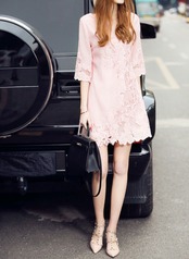 新作 オシャレ♪3色/フラワーレース模様Aラインドレス