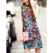 新作 オシャレ♪和風フラワー刺繍ノースリーブドレス