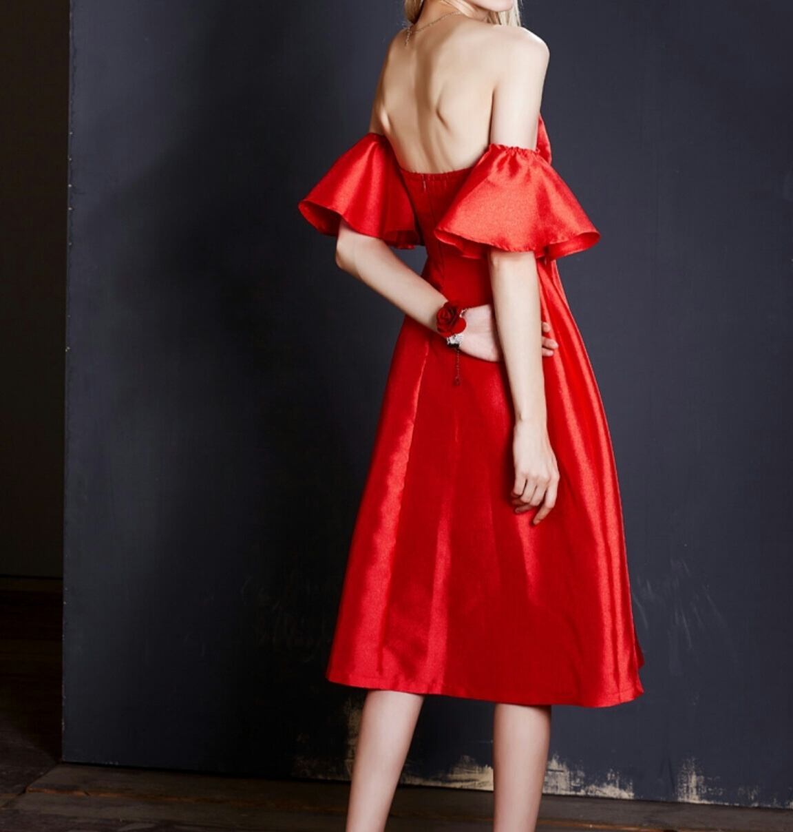 新作 オシャレ♪ウエストスクエアリボンエアリードレス